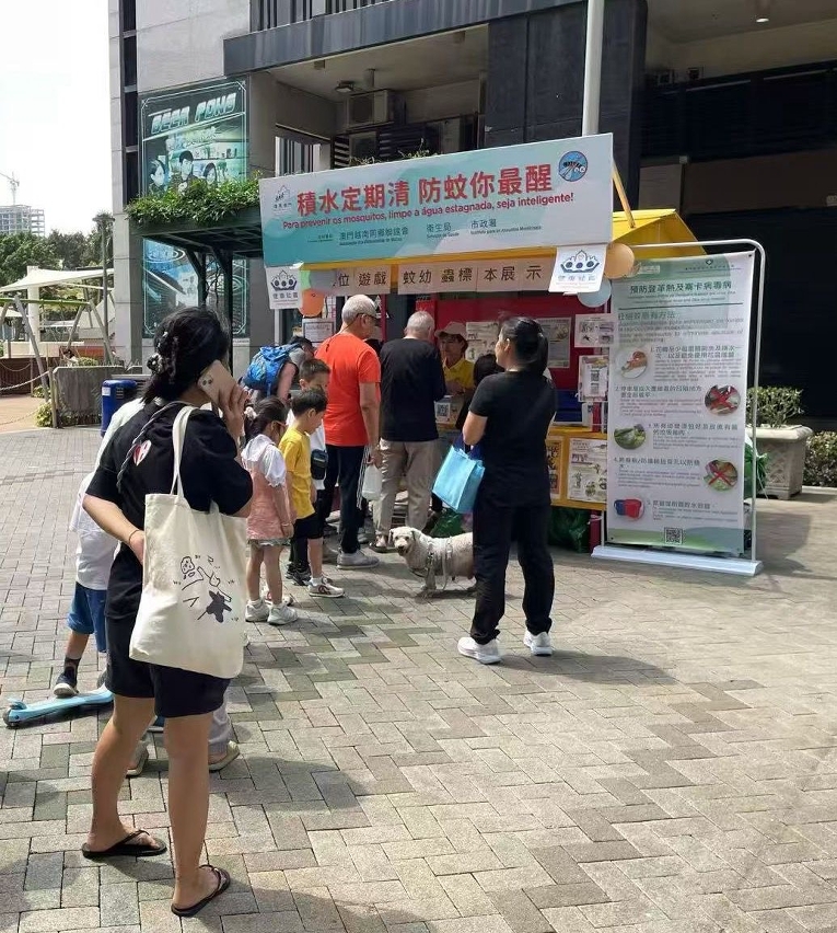 Durante a actividade, os trabalhadores interagiram activamente com os residentes através de jogos, reforçando os seus conhecimentos sobre a adopção correcta das medidas de prevenção de mosquitos. Para que compreendam mais intuitivamente a importância e a eficácia da eliminação das águas estagnadas na prevenção da febre de dengue, nos "postos de divulgação da prevenção contra a febre de dengue na comunidade", foram mostrados espécimes das larvas dos mosquitos, permitindo conhecer o processo de crescimento e os hábitos de vida dos mosquitos Aedes Albopictus. Os mosquitos Aedes Albopictus reproduzem-se principalmente em pequenas quantidades de água estagnada, limpa e parada,. Portanto, é necessário manter a higiene ambiental, eliminar as águas estagnadas nas zonas periféricas do domicílio e no local de trabalho, impedindo a proliferação de mosquitos. Em casa, podem ser instaladas redes mosquiteiras nas janelas, mosquiteiros ou ligar o ar condicionado, entre outras medidas, para reduzir a possibilidade de serem picados por mosquitos. Ao desenvolver actividades ao ar livre, pode optar por vestir roupas com mangas compridas e de cor clara, aplicar repelente anti-mosquitos com ingrediente de DEET (DEET, IR3535 e Icaridin) nas partes expostas da pele ou nas roupas. Em caso de sintomas suspeitos de febre de dengue, como febre e erupção cutânea, deve recorrer de imediato ao médico e informar o médico sobre o local de residência ou histórico de viagem.