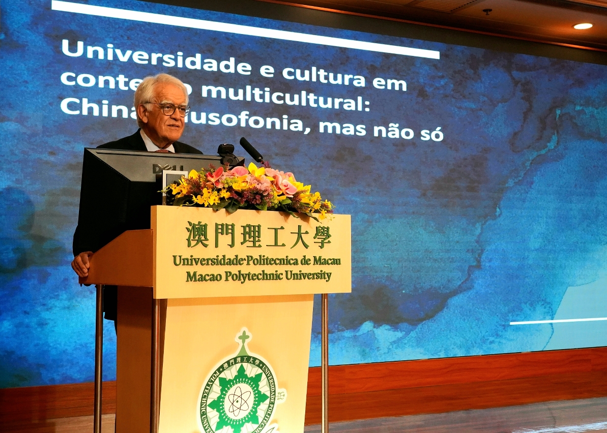 Para apoiar a construção da “Plataforma Sino-Lusófona” e da “Base de Formação de Quadros Qualificados Bilingues em Chinês e Português” em Macau, e promover a integração profunda entre a cultura e a educação sino-lusófona, a Faculdade de Línguas e Tradução e o Centro Pedagógico e Científico da Língua Portuguesa da Universidade Politécnica de Macau (UPM) co-organizaram a 5.ª palestra das “Conversas com Personalidades Sino-Lusófonas”. Foi convidado, como orador principal, o Professor Doutor Carlos Ascenso André, Professor Coordenador Honorário da UPM e Presidente do Conselho Científico da Academia das Ciências de Lisboa, de Portugal. Sob o tema “Universidade e Cultura em Contexto Multicultural: China e Lusofonia, Mas Não Só”, foram abordadas as interacções e referências entre a China e Portugal no âmbito da herança e inovação cultural universitária.