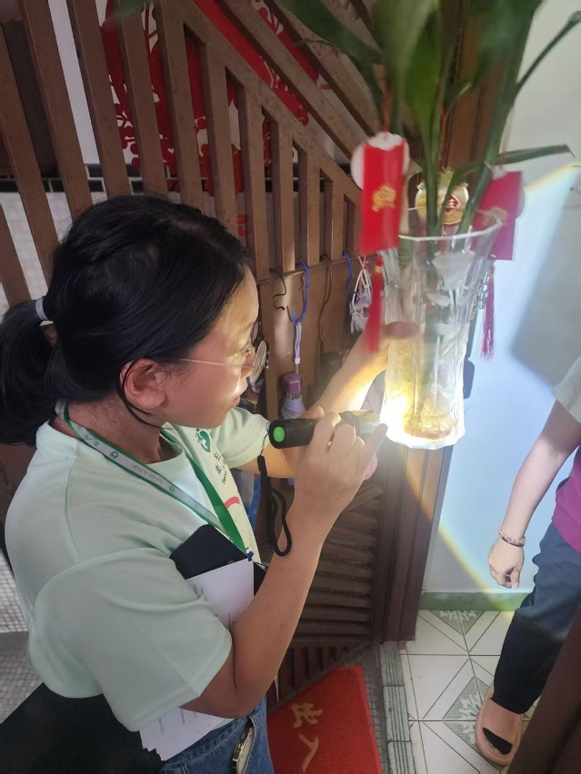 • O pessoal dos Serviços de Saúde desenvolve trabalhos de prevenção e controlo de mosquitos nas proximidades do domicílio e nos principais locais de actividades da doente