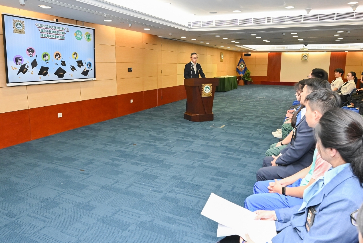 Os representantes dos recém-graduados, LAU Pui Man e WONG Kin Seng, partilharam os seus sentimentos na cerimónia de despedida, referindo que, através de formação sistemática, visitas e actividades de interesse público, não só adquiriram conhecimentos práticos sobre direito e prevenção criminal, como também compreenderam profundamente o trabalho policial, o que os levou a perceber o papel, as responsabilidades e o compromisso dos jovens na sociedade. Eles irão continuar a cumprir a missão de garantir a segurança comunitária, a trabalhar em conjunto com a polícia na promoção da educação jurídica e a transmitir a força da justiça