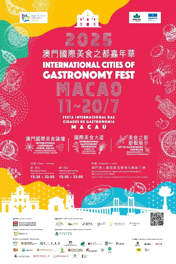 A “Festa Internacional das Cidades de Gastronomia, Macau 2025”, organizada pela Direcção dos Serviços de Turismo (DST), realiza-se de 11 a 20 de Julho, na Praça do Coliseu Romano e Legend Boulevard da Doca dos Pescadores. O evento apresenta três destaques: a Avenida de Gastronomia Internacional, as Demonstrações de Cidades de Gastronomia e o “Fórum Internacional de Gastronomia, Macau”. Para acolher os visitantes da festa, são disponibilizadas cinco zonas de refeições, com um total de cerca de 1.000 assentos. Com três palcos no local, a programação inclui espectáculos variados como dança folclórica portuguesa, actuação de bandas, salto à corda artístico e dança de rua, complementados por interacções com marionetas, magia e modelagem de balões por palhaços, garantindo um ambiente ainda mais animado para o público.