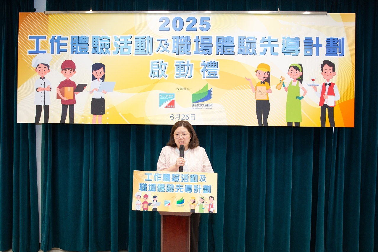 A Direcção dos Serviços para os Assuntos Laborais (DSAL) realizou, em finais de Junho, a cerimónia de lançamento da “Actividade de experiência de trabalho 2025” e do “Plano piloto de experiência no local de trabalho”, com o objectivo de apoiar os finalistas do ano lectivo em curso e aos alunos do 2.º ano do ensino secundário complementar das escolas do ensino especial e do ensino inclusivo, através da experiência de trabalho nas férias escolares de Verão, na futura transição do campo escolar para o profissional sem sobressaltos. Ao mesmo tempo, este evento também promove o conhecimento das empresas sobre a capacidade de trabalho dos alunos do ensino especial e do ensino inclusivo, incentivando desse modo as empresas a contratarem as respectivas comunidades que reúnem condições de emprego. A cerimónia de lançamento contou com a presença de mais de 80 pessoas, incluindo os representantes da Direcção dos Serviços de Educação e de Desenvolvimento da Juventude (DSEJ) e do Instituto de Acção Social (IAS), empresas participantes, representantes das escolas e alunos.