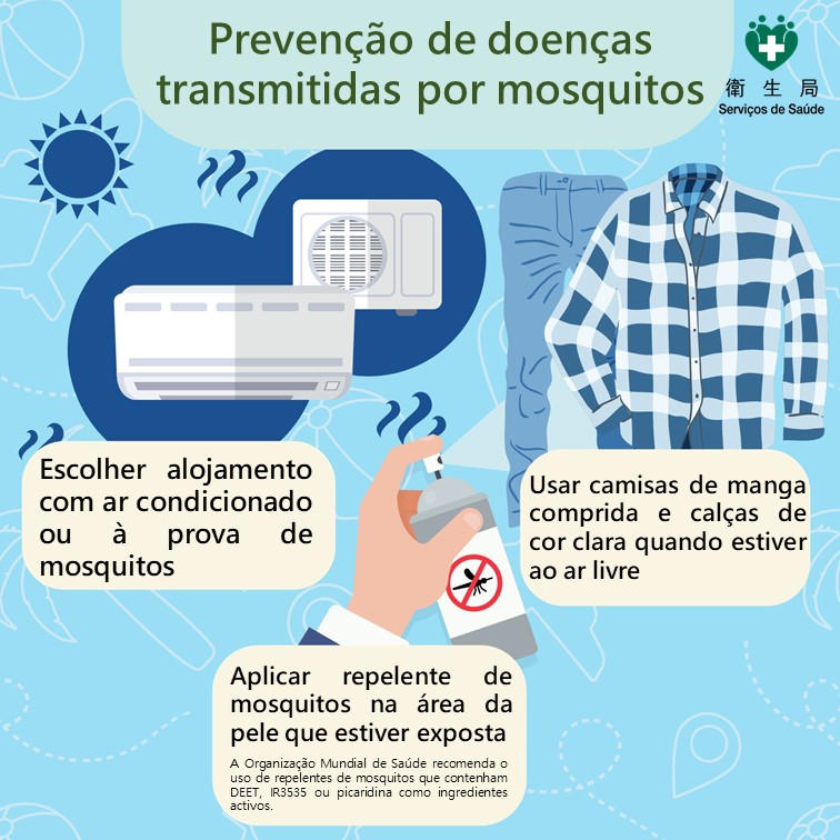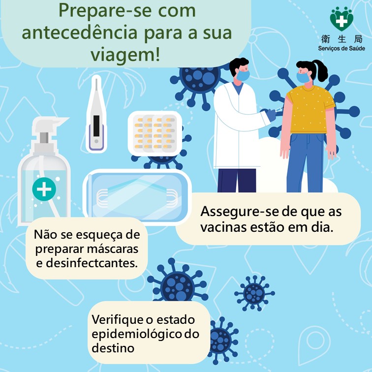 Com a chegada das férias de Verão, muitos residentes planeiam viajar ou visitar as suas famílias. Com o intuito de garantir a segurança da viagem, de permitir aos residentes gozarem as férias com tranquilidade e proteger a sua saúde e dos seus familiares, os Serviços de Saúde alertam os residentes para a prevenção de doenças antes de viajarem, recomendando que, antes da partida, devem consultar a situação epidemiológica das doenças transmissíveis no local de destino, tomar medidas preventivas contra mosquitos e prestar atenção à higiene pessoal e alimentar, a fim de reduzir o risco de infecção de febre de dengue, doenças respiratórias infecciosas e doenças gastrointestinais.