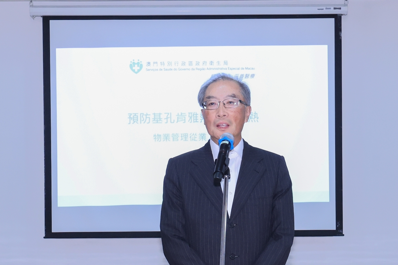 Tendo em conta a ocorrência sucessiva de casos de febre de dengue e de febre de chikungunya (adiante designada por “dupla febre”) em Macau e nas regiões vizinhas, a fim de reforçar antecipadamente as medidas de prevenção e eliminação de mosquitos no sector de administração de propriedades de Macau, os Serviços de Saúde, em colaboração com o Instituto para os Assuntos Municipais (IAM), organizaram, na sexta-feira (dia 8), um colóquio com o sector de administração de propriedades, contando com a participação de mais de 120 representantes de 21 empresas de administração de propriedades.
