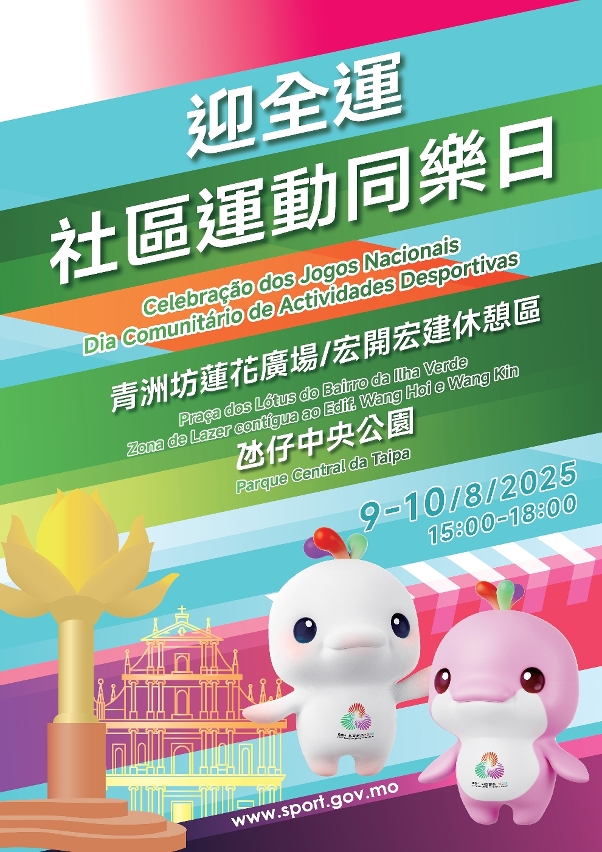 Será bem vindo tada a população de participar activamente no “Dia de Convívio Desportivo da Sociedade para recepção dos Jogos Nacionais”, recebendo conjuntamente a Actividade de Grande Envergadura dos Jogos Nacionais de Grande Baía Guangdong-Hong Kong-Macau