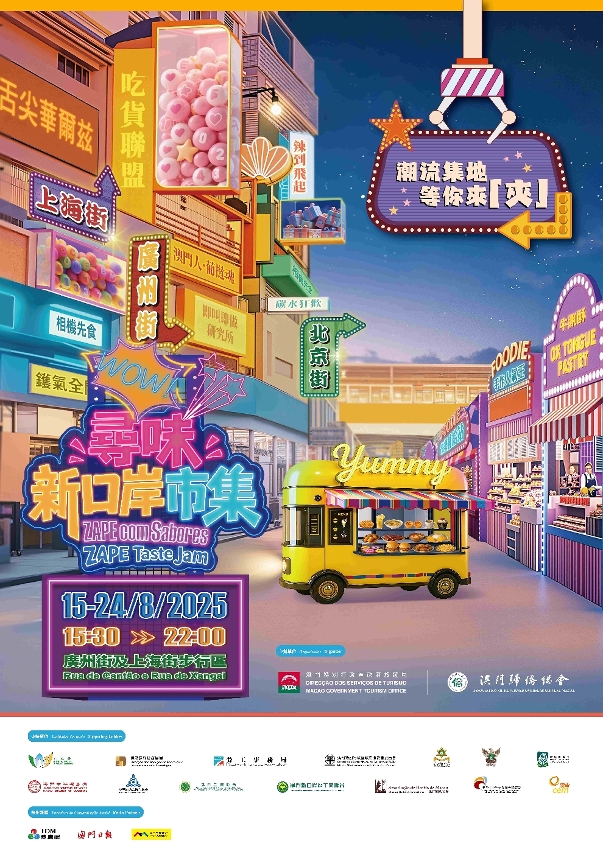 A Direcção dos Serviços de Turismo (DST) e a Associação Geral dos Chineses Ultramarinos de Macau (AGCUM) organizarão, em conjunto, entre 15 e 24 de Agosto, a “ZAPE com Sabores”, que terá lugar nas zonas pedonais da Rua de Cantão e da Rua de Xangai. A feira contará com a participação de comerciantes e grupos de espectáculos locais, combinando gastronomia diversificada e elementos culturais e criativos, aproveitando o espaço da Zona de Aterros do Porto Exterior (ZAPE) para mostrar o encanto comunitário de Macau. O evento decorrerá à tarde até à noite, incentivando os visitantes e residentes a explorar a ZAPE, experienciar o alojamento em hotéis e o consumo nos bairros comunitários, promover a economia nocturna, estimular a economia comunitária e dinamizar o turismo na ZAPE.
