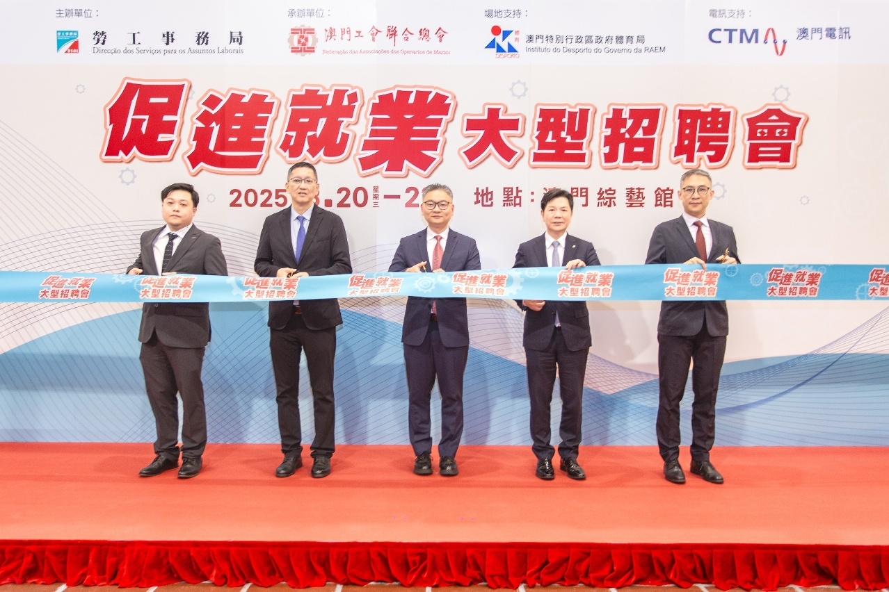 A fim de promover eficientemente a integração dos candidatos a emprego de todos os estratos sociais no mercado de trabalho, bem como para apoiar a mobilidade ascendente da carreira dos residentes, a Sessão de recrutamento de grande envergadura para a promoção de emprego, organizada pela Direcção dos Serviços para os Assuntos Laborais (DSAL), em colaboração com a Federação das Associações dos Operários de Macau (FAOM), teve a cerimónia de abertura no presente dia (20 de Agosto) no Fórum de Macau, seguindo do arranque de três dias consecutivos de actividades, pelo qual o primeiro dia de recrutamento contou com a entrada de1,279 visitantes.