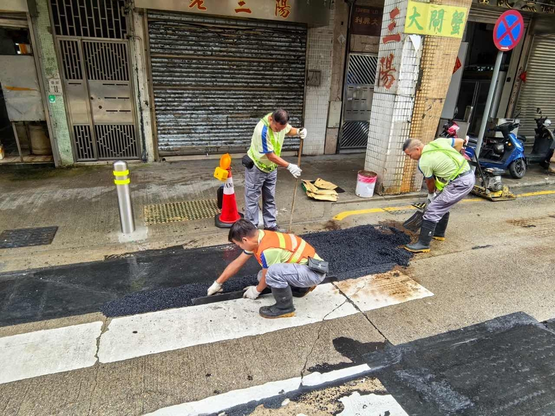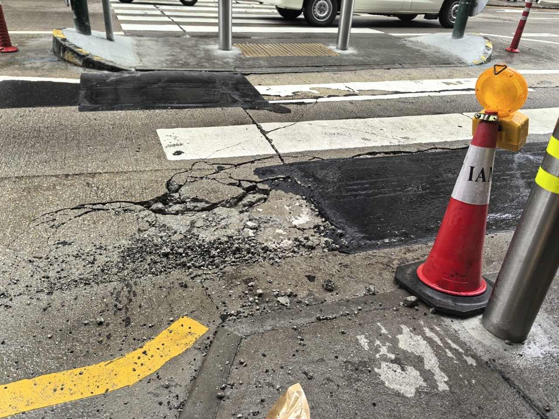 Recentemente, numa inspecção efectuada pelo IAM ao troço de pavimento com betão armado na Rua do Visconde Paço de Arcos, perto da passagem para peões, verificou-se que, devido à circulação frequente de veículos pesados e  às chuvas torrenciais que se têm registado nos últimos dias, a via pública ficou desagregada e com barras de aço expostas. Por isso, surgiu o risco de queda de pavimento, que pode afectar a segurança da circulação de veículos, pelo que o IAM adoptou, de imediato, medidas provisórias, utilizando asfalto adequado para proceder à reparação para efeitos de recuperação provisória e eliminação de risco. No entanto, a pavimentação provisória dificilmente consegue elevar a capacidade de carga uniforme do pavimento, sendo necessário proceder à repavimentação urgente e à reparação do respectivo troço, a fim de garantir a segurança da circulação rodoviária.