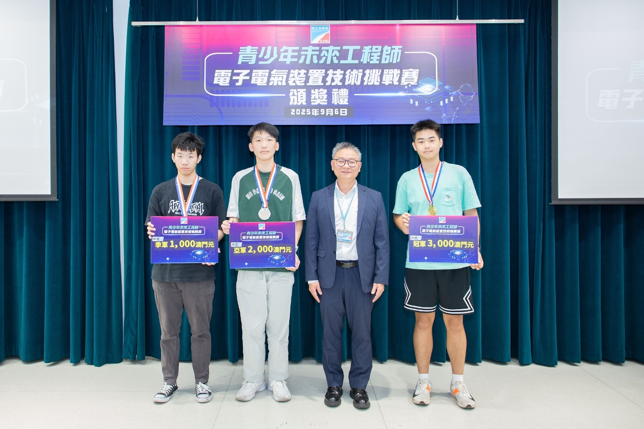 Com o objectivo de aumentar os conhecimentos dos jovens relativos à tecnologia electrónica e de instalações eléctricas e de despertar o seu interesse na aquisição de competências profissionais, a Direcção dos Serviços para os Assuntos Laborais (DSAL) realizou em Julho o concurso “Desafio em Tecnologia Electrónica e de Instalações Eléctricas para Jovens Futuros Engenheiros”, atribuindo diplomas e prémios monetários a oito vencedores na cerimónia de entrega de prémios decorrida a 6 de Setembro.