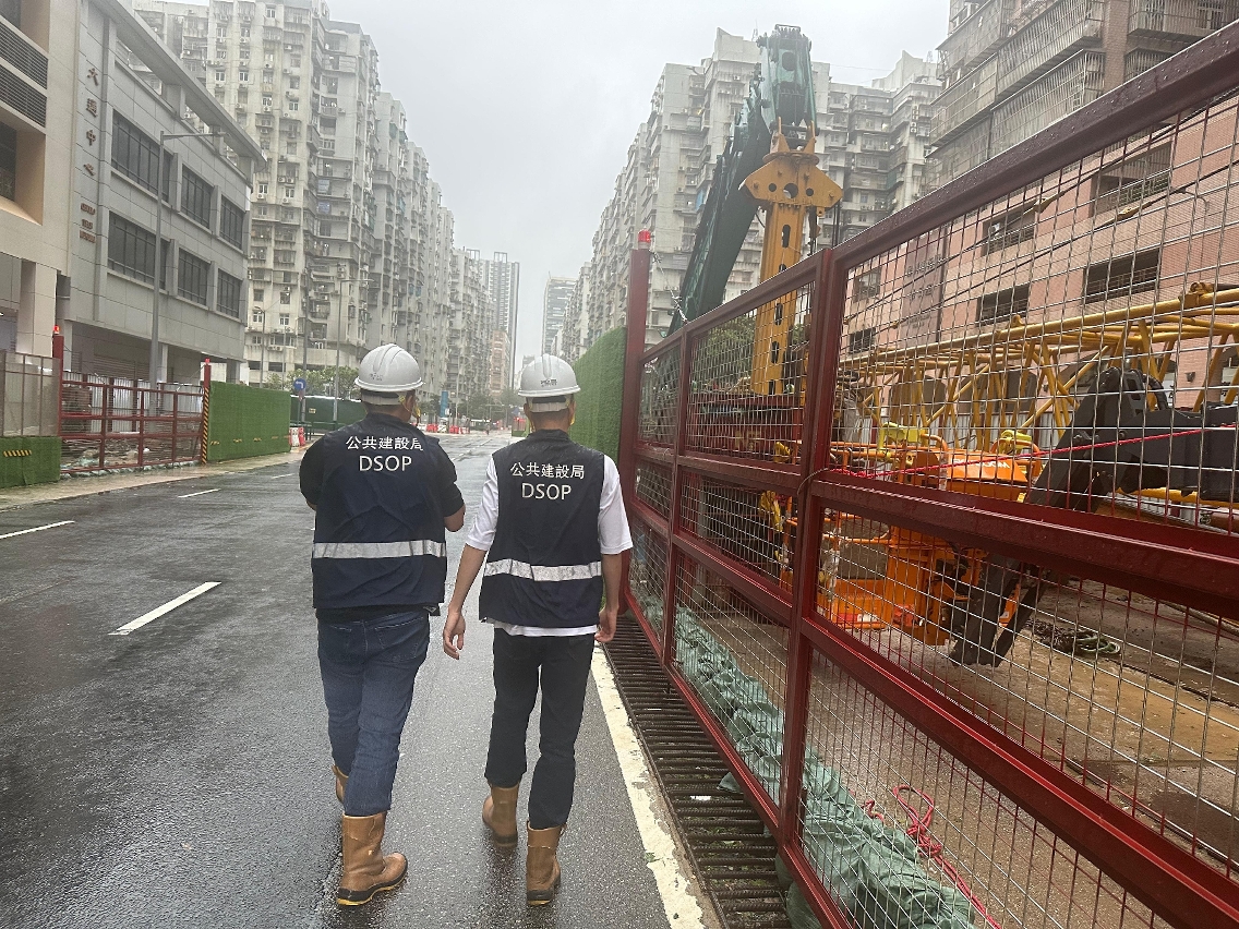 A fim de acelerar os trabalhos de remoção e de limpeza dos danos provocados durante o ataque do supertufão “Ragasa” em Macau, a Direcção dos Serviços de Obras Públicas deslocou-se de imediato, na altura em que o sinal n.o 10 foi substituído pelo sinal n.o 8 de tempestade tropical, às obras que lhe pertencem para se inteirar da situação dos danos nos diversos locais de obra, e se estes danos tinham causado impacto às vias circundantes ou às instalações públicas, entre outros, no intuito de coordenar e organizar os trabalhos de remoção e de limpeza de forma mais urgente.