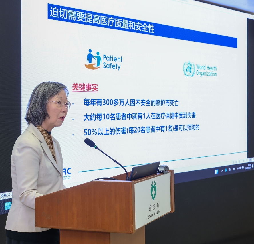 • A professora Lei Weng Mui apresentou detalhadamente os «Critérios da Acreditação segundo os Padrões Internacionais de Acreditação Hospitalar da China»