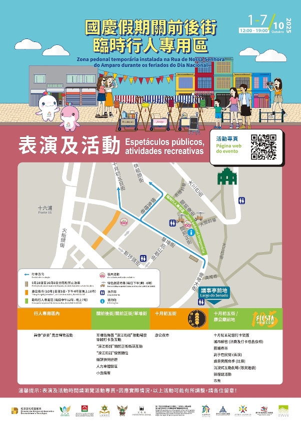 Para mais informações detalhadas sobre programas e espectáculos nas zonas pedonais, queiram visitar a respectiva página exclusiva e atender às informações divulgadas por serviços competentes.
