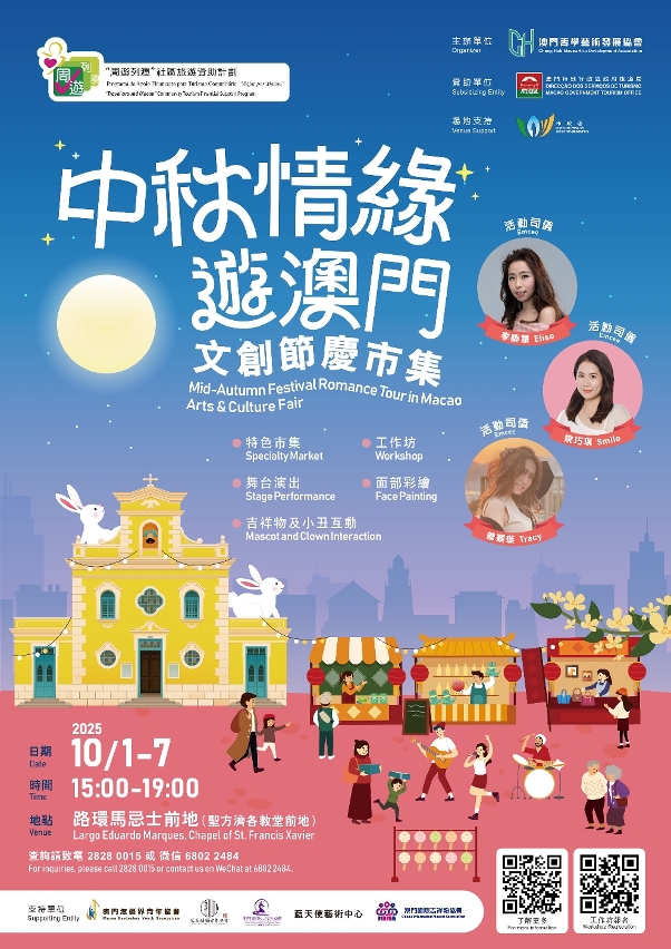 Durante o mesmo período, terá lugar na Praça de Eduardo Marques (Largo de S. Francisco Xavier), em Coloane, a “Mid-Autumn Festival Romance Tour in Macao Arts & Culture Fair”, que inclui instalações festivas, feira cultural e criativa, experiências artesanais, interacções na rua, entre outros. Em conjunto com 60 estabelecimentos comerciais locais, serão lançadas promoções para atrair mais visitantes e promover o turismo e o consumo nesta época festiva.