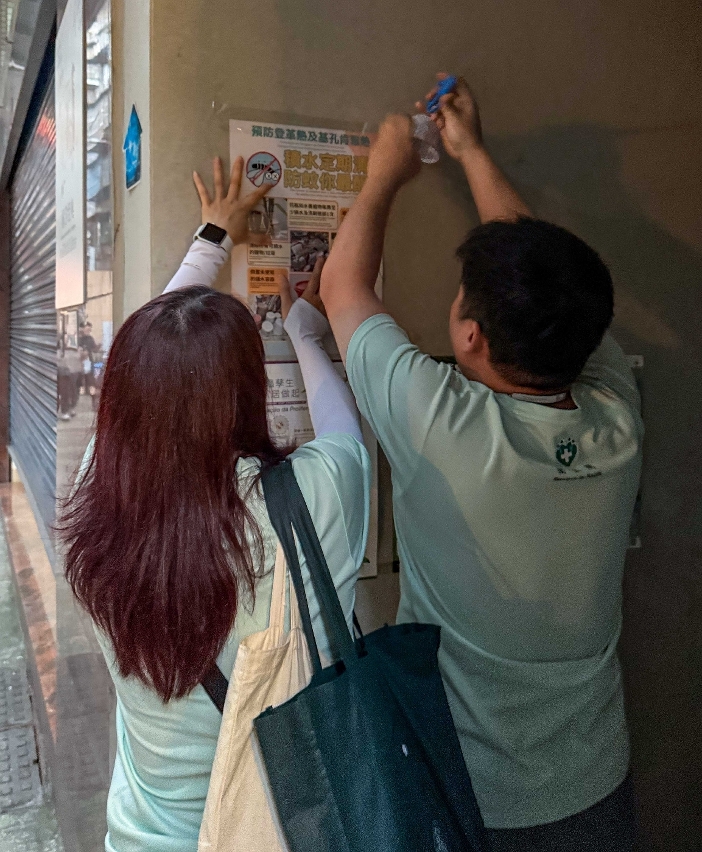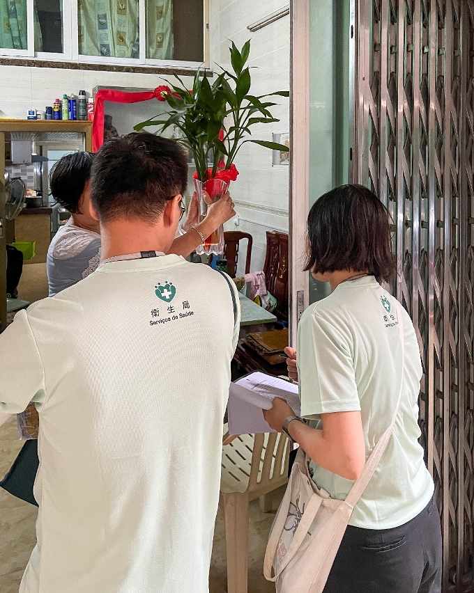 Os Serviços de Saúde salientam que a febre de chikungunya é transmitida pela picada de mosquitos Aedes albopictus infectados pelo vírus de chikungunya, não se transmitindo directamente entre os seres humanos. A eliminação da fonte de proliferação é a medida preventiva mais eficaz. No decurso da acção de inspecção domiciliar “porta a porta”, os profissionais dos Serviços de Saúde prestaram assistência aos residentes na verificação de recipientes com águas estagnadas, habitualmente encontrados no domicílio, nomeadamente em vasos e bases de vasos. Foi detectada a presença de larvas em alguns recipientes, os quais foram tratados de imediato, tendo sido efectuada a devida divulgação e educação junto dos residentes. Ao mesmo tempo, foi observada a presença de recipientes com água estagnada em determinadas áreas públicas que não estavam devidamente tapados ou invertidos. Estas áreas já apresentam uma proliferação de mosquitos, o que aumenta o risco de propagação da febre de chikungunya e exige especial atenção e medidas de prevenção por parte dos residentes.