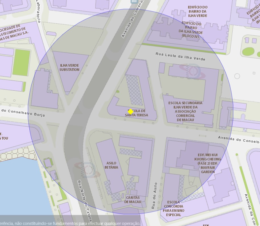 Em resposta à notificação das autoridades do Interior da China, de 19 de Outubro, sobre um doente com febre Chikungunya e um doente com febre de dengue, que visitaram Macau, os Serviços de Saúde procederão, à eliminação química urgente de mosquitos nas zonas de risco próximas da paragem de autocarro da Ilha Verde / Escola de Santa Teresa, paragem de autocarro do Edifício do Posto Fronteiriço da Ponte Hong Kong-Zhuhai-Macau, Edifício do Posto Fronteiriço da Ponte Hong Kong-Zhuhai-Macau, Ruínas de S. Paulo e Casino Grand Lisboa. Tendo em conta que a área de acção do mosquito Aedes é de cerca de 100 metros em torno do local de reprodução, a área de risco com um raio de 100 metros será abrangida por este trabalho de controlo. Por conseguinte, apela-se à população para que esteja atenta e adopte medidas preventivas, a fim de reforçar a prevenção de doenças infecciosas transmitidas por mosquitos. Relativamente às áreas envolvidas, podem consultar a fotografia em anexo.