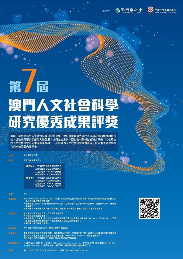 As candidaturas à “7.ª Edição do Prémio de Estudos em Ciências Sociais e Humanas de Macau” organizado, em conjunto, pela Fundação Macau e a Social Sciences in China Press, encontram-se abertas a partir desta data até 30 de Dezembro de 2025.