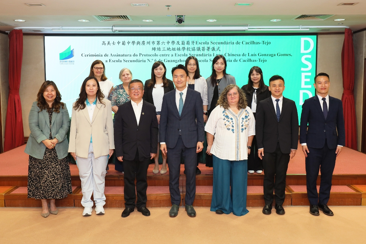 A DSEDJ continua a aproveitar as vantagens de Macau na sua conectividade com o exterior, promovendo activamente a geminação de escolas de Macau com as do Interior da China e do exterior, para ampliar os intercâmbios externos. Este acordo tripartido de escolas geminadas irá alargar ainda mais os canais de intercâmbio da língua portuguesa ao nível do ensino não superior. No futuro, as três escolas geminadas irão promover uma interacção profunda entre docentes e alunos na aplicação da língua portuguesa e na compreensão cultural, entre outros aspectos, através da realização de iniciativas como estudo online e in loco da língua portuguesa para os alunos, sessões de partilha de experiências pedagógicas para docentes, bem como actividades temáticas culturais sino-portuguesas, o que visa melhorar a proficiência na língua portuguesa entre os alunos do ensino primário e secundário de Macau. Esta iniciativa irá enriquecer particularmente o ensino e as actividades da língua portuguesa na Escola Secundária Luso-Chinesa de Luís Gonzaga Gomes, injectando um novo impulso no desenvolvimento de um sistema educativo abrangente de língua portuguesa sob o modelo de concepção “one through train”. Simultaneamente, esta iniciativa irá facilitar a integração mútua de recursos didácticos da língua portuguesa entre Macau, o Interior da China e os Países de Língua Portuguesa no âmbito do ensino não superior, contribuindo para a formação de quadros qualificados bilingues em chinês e português em Macau.