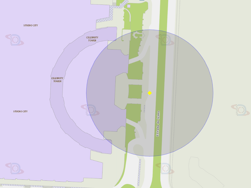 • Zona de risco com um raio de 100 metros nas proximidades da Paragem de autocarros do Studio City