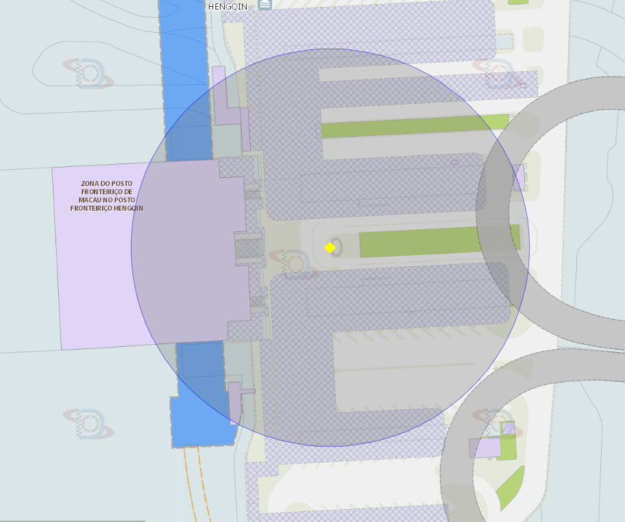 • Zona de risco com um raio de 100 metros nas proximidades da Zona de espera de autocarros na zona do Posto Fronteiriço da Parte de Macau do Posto Fronteiriço Hengqin