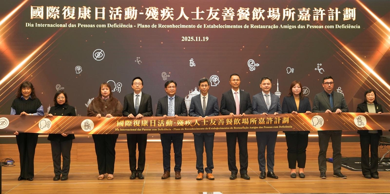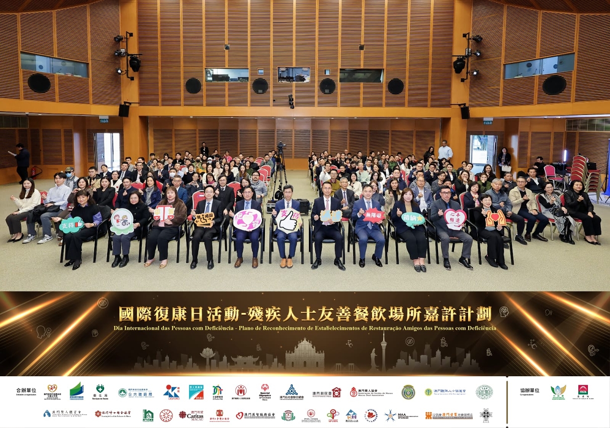 Para assinalar o “Dia Internacional das Pessoas com Deficiência”, definido pela Nações Unidas, o Instituto de Acção Social (IAS), seis serviços públicos, 22 instituições particulares e duas escolas, em cooperação com a Direcção dos Serviços de Turismo e o Instituto para os Assuntos Municipais, co-organizaram a “Actividade do Dia Internacional das Pessoas com Deficiência - Plano de Reconhecimento de Estabelecimentos de Restauração Amigos das Pessoas com Deficiência”, na tarde do dia 19 de Novembro, no salão de convenções do Centro de Ciência de Macau, tendo sido reconhecidos um total de 61 estabelecimentos de restauração recomendados pelas instituições de reabilitação ou auto-recomendados. A iniciativa contou com a participação de cerca de 200 pessoas, incluindo co-organização, colaboração, representantes de estabelecimentos de restauração e pessoas com deficiência. Para facilitar a participação na actividade, de forma acessível, estiveram disponíveis vários equipamentos sem barreiras incluindo interpretação gestual, legendas com utilização de inteligência artificial, audiodescrição, acessos livres de barreiras, etc.