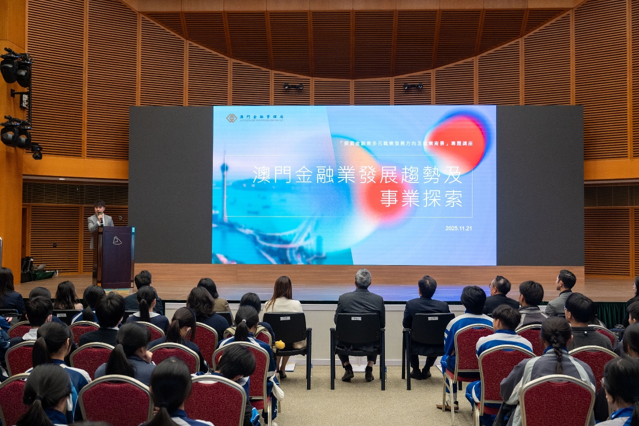 Com o objectivo de proporcionar aos alunos do ensino secundário complementar de Macau um melhor conhecimento sobre as tendências de desenvolvimento do sector financeiro moderno de Macau e das respectivas perspectivas de emprego, bem como de os auxiliar a planear de forma mais adequada os seus percursos académicos e profissionais, a Autoridade Monetária de Macau (adiante designada por «AMCM»), em colaboração com a Direcção dos Serviços de Educação e de Desenvolvimento da Juventude (adiante designada por «DSEDJ»), organizou recentemente duas sessões da palestra temática intitulada «Explorar as Múltiplas Vias de Desenvolvimento Profissional e as Perspectivas de Emprego no Sector Financeiro». As duas sessões, realizadas com êxito no auditório do Centro de Ciência de Macau, contaram com a participação de cerca de 520 alunos do ensino secundário complementar, que se inscreveram para participar, provenientes de 14 escolas de Macau.