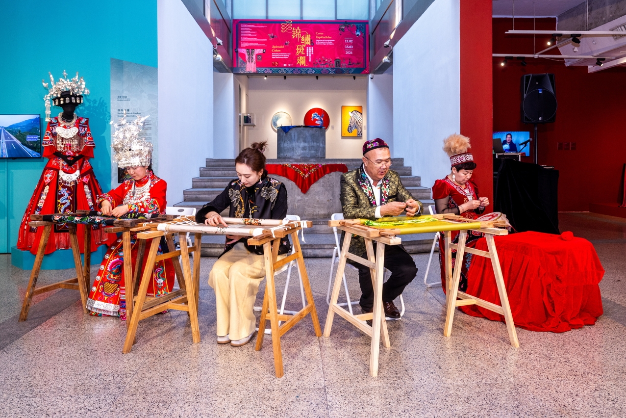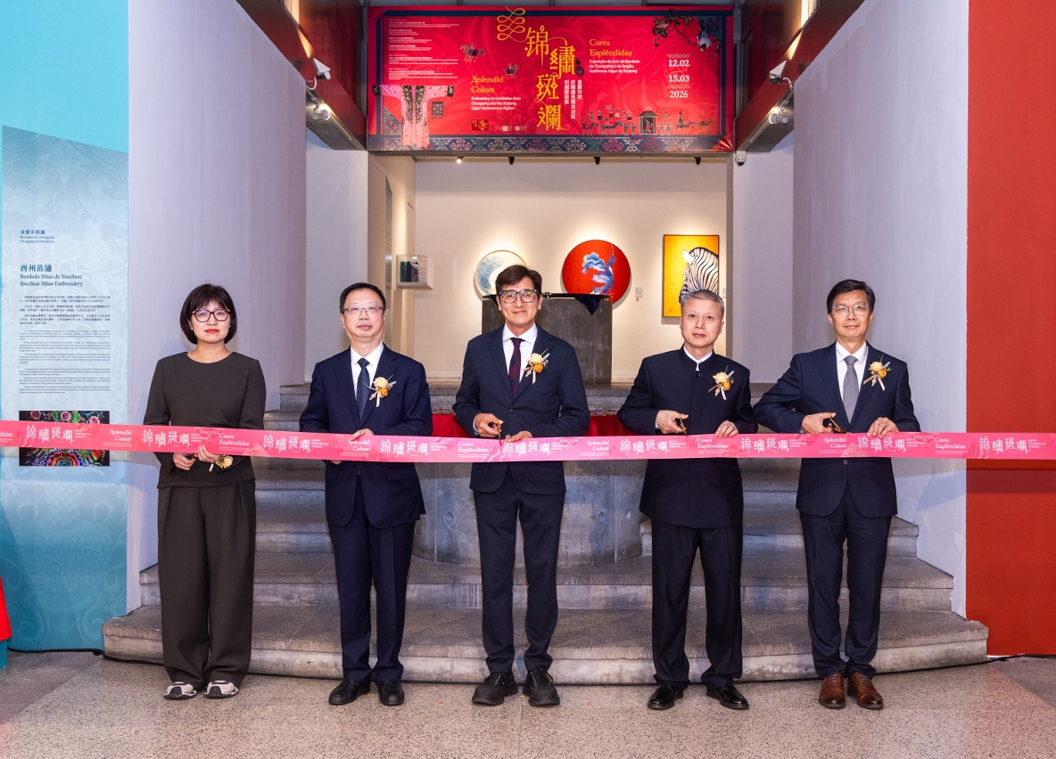 Organizada pelo Gabinete para os Assuntos de Hong Kong, Macau e Taiwan do Ministério da Cultura e Turismo da República Popular da China, pelo Instituto Cultural do Governo da RAEM, pela Comissão Municipal de Desenvolvimento Cultural e Turístico de Chongqing e pelo Departamento de Cultura e Turismo da Região Autónoma Uigur de Xinjiang; coordenada pelo Centro para o Desenvolvimento das Artes e Literaturas Étnicas e Populares do Ministério da Cultura e Turismo; e coordenada pelo Departamento de Publicidade, Cultura e Desporto do Gabinete de Ligação do Governo Popular Central na RAEM, a exposição “Cores Esplêndidas: Exposição de Arte do Bordado de Chongqing e da Região Autónoma Uigur de Xinjiang” foi inaugurada hoje (11 de Fevereiro), na Galeria Tap Seac. Estiveram presentes na cerimónia o Presidente do Instituto Cultural do Governo da RAEM, substituto, Cheang Kai Meng; o Inspector de Primeira Classe da Comissão Municipal de Desenvolvimento Cultural e Turístico de Chongqing, Xing Jun; o Director do Centro para o Desenvolvimento das Artes e Literaturas Étnicas e Populares do Ministério da Cultura e Turismo da República Popular da China, Lan Jing; a Chefe da Divisão de Património Cultural Intangível do Departamento de Cultura e Turismo da Região Autónoma Uigur de Xinjiang, Luo Jing e o Membro da Comissão Executiva da TDM - Teledifusão de Macau, S.A., Cheang Kong Pou.