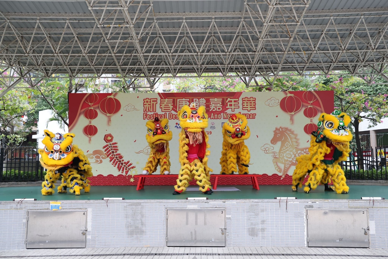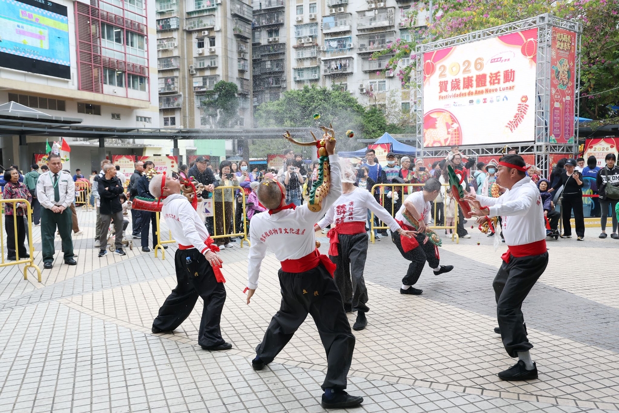 Em seguida, o “Festival Desportivo do Ano Novo Lunar”, realizado durante a tarde, teve lugar na Praça do Jardim do Mercado do Iao Hon. O evento foi organizado conjuntamente pelo Instituto do Desporto, pelo Conselho Desportivo da Federação das Associações dos Operários de Macau, pela Macau Special Olympics, pelo Comité Paralímpico de Macau-China – Associação Recreativa e Desportiva dos Deficientes de Macau-China e pela Associação de Desporto de Surdos de Macau. No local, foram promovidas tendas de jogos alusivos ao Ano Novo Lunar, bem como apresentações sobre a cultura da dança do dragão e do leão, actuações de dança do dragão e do leão, uma dança do dragão embriagado e demonstrações desportivas por pessoas portadoras de deficiência. O Festival contou com a adesão de muitas famílias, os quais puderam assim desfrutar de uma tarde alegre.