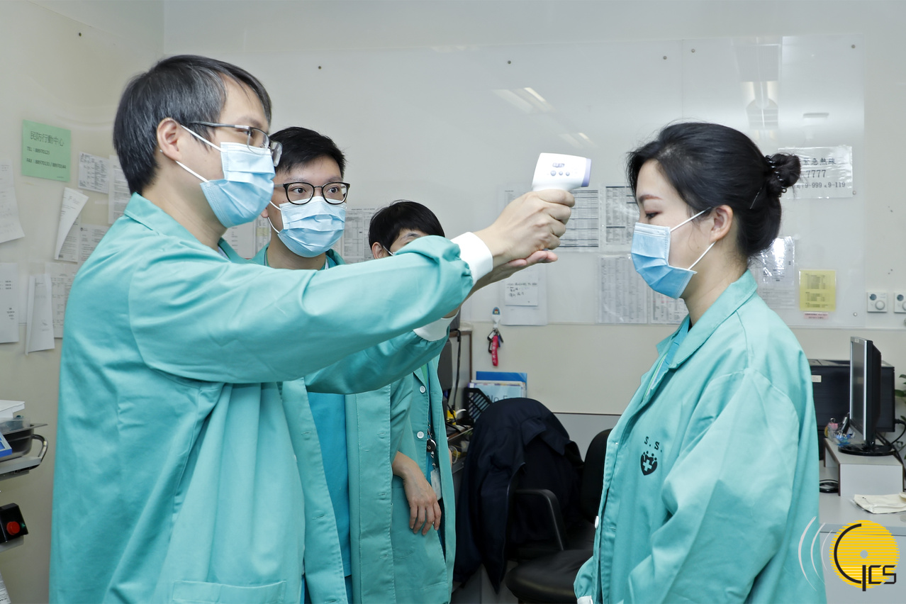医护人员教导机场地勤及赴湖北随机工作人员穿着防护衣及配戴口罩等准备工作。