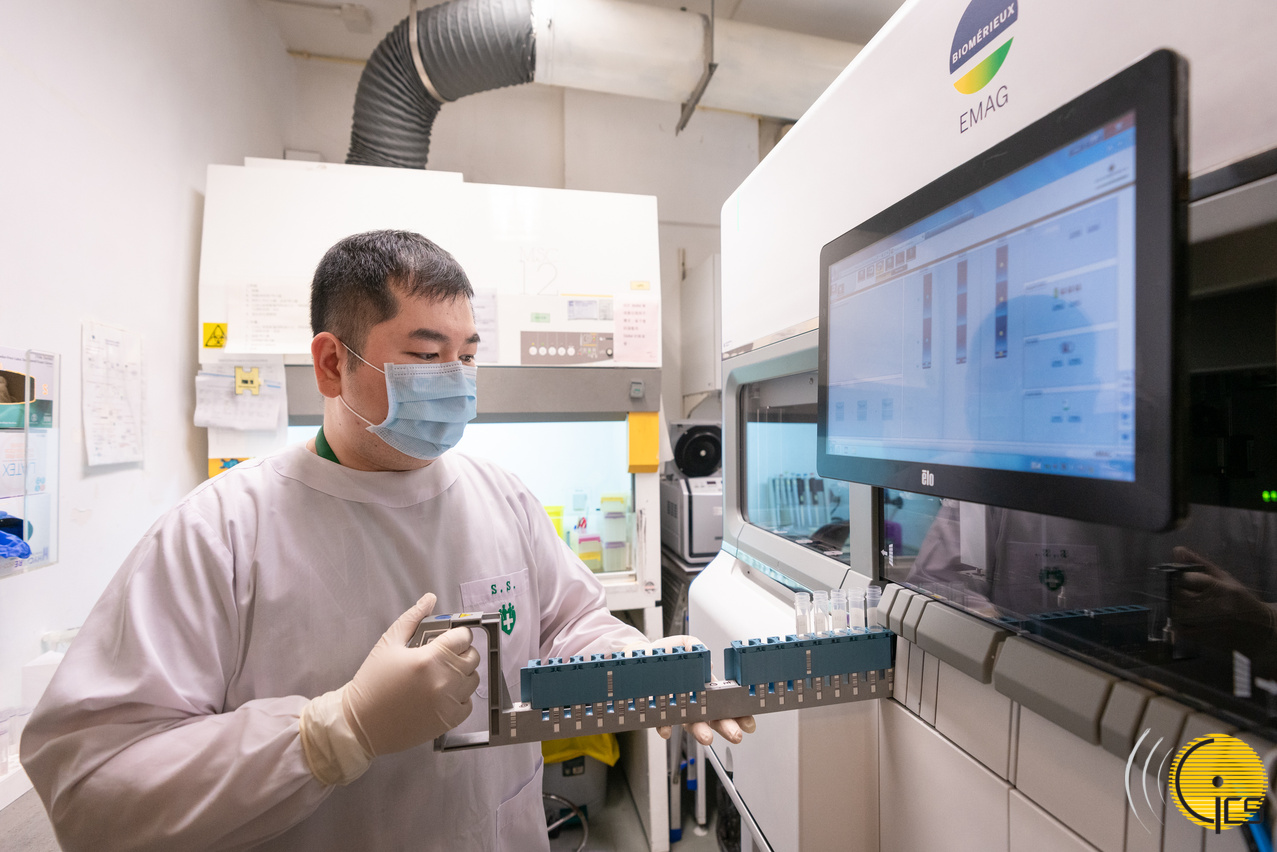 将样本放上全自动核酸萤光分析系统进行检测。当系统检测到病毒核酸的萤光讯号时,结果为阳性;反之为阴性。