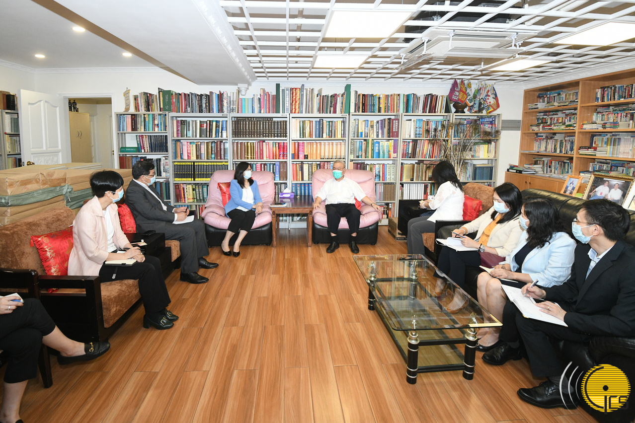 新闻局局长陈露率领团队拜访莲花卫视,了解其业务状况和运作,就新闻业界关心的事宜交换意见。