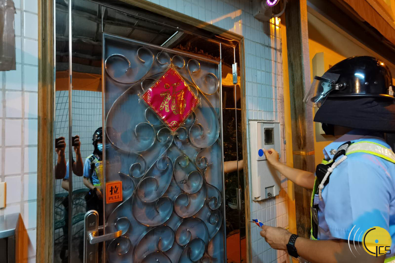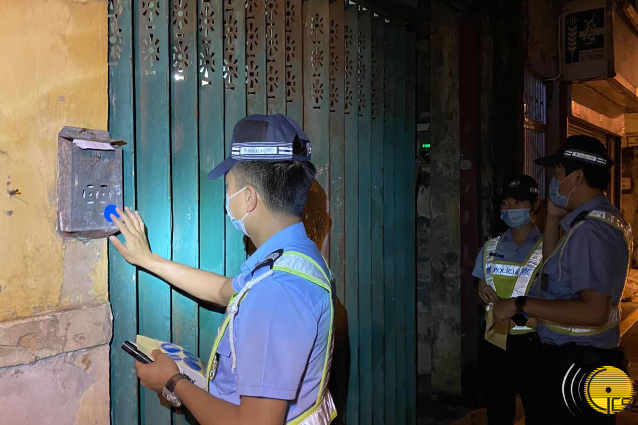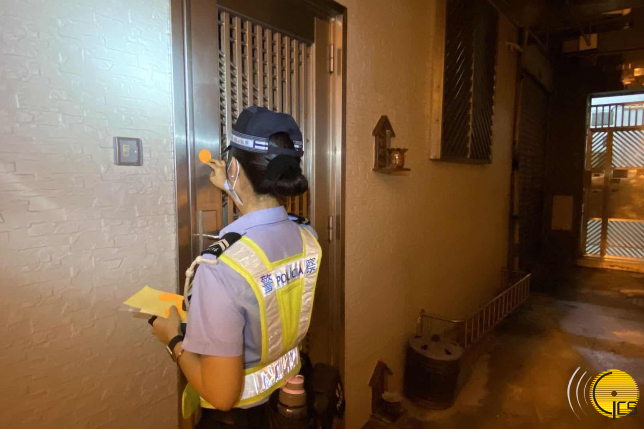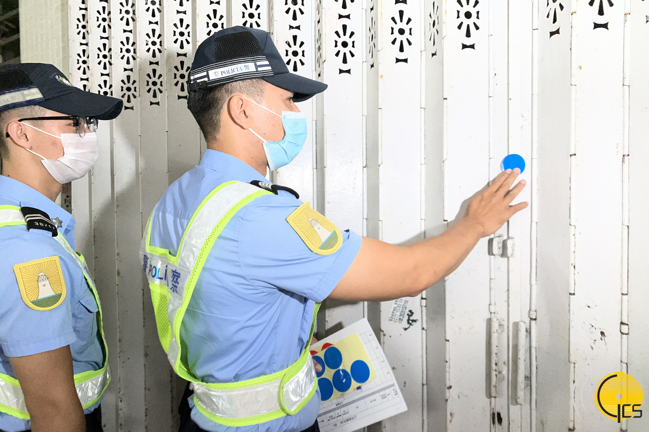治安警张贴撤离标示以进行排查