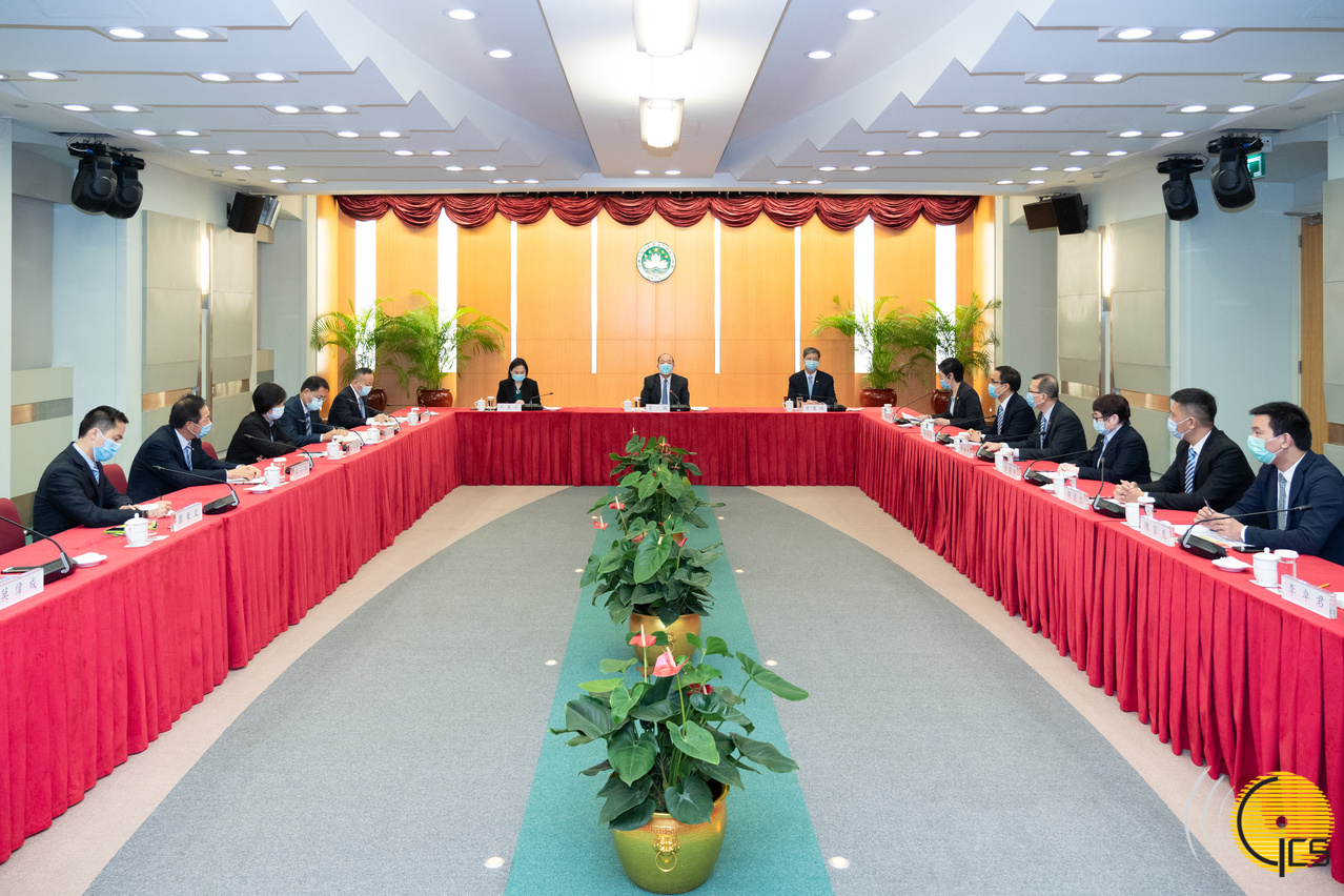 行政长官贺一诚会见澳门街坊会联合总会一行,就制定2021年财政年度施政报告听取意见和建议。