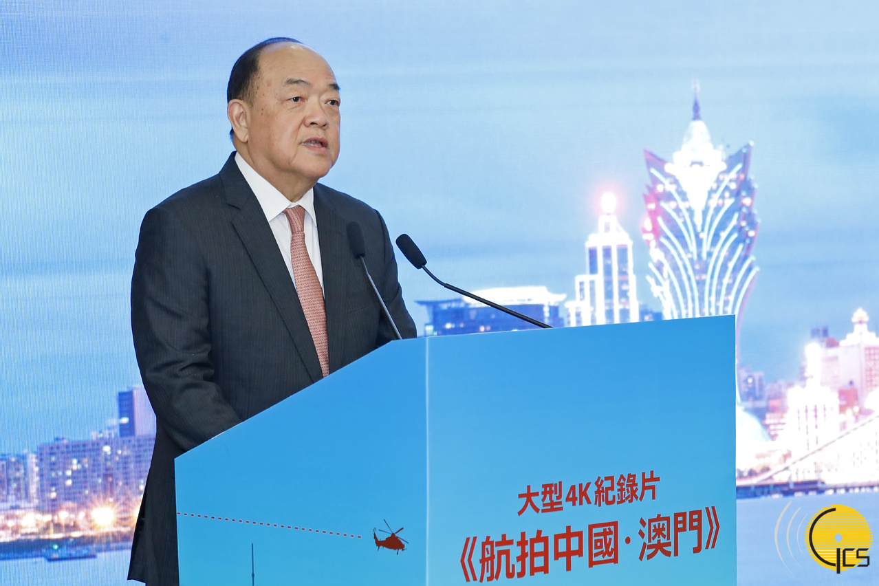 行政长官贺一诚在《中央广播电视总台与澳门特别行政区政府深化战略合作框架协议》签署仪式暨《航拍中国 澳门》开机仪式上致辞