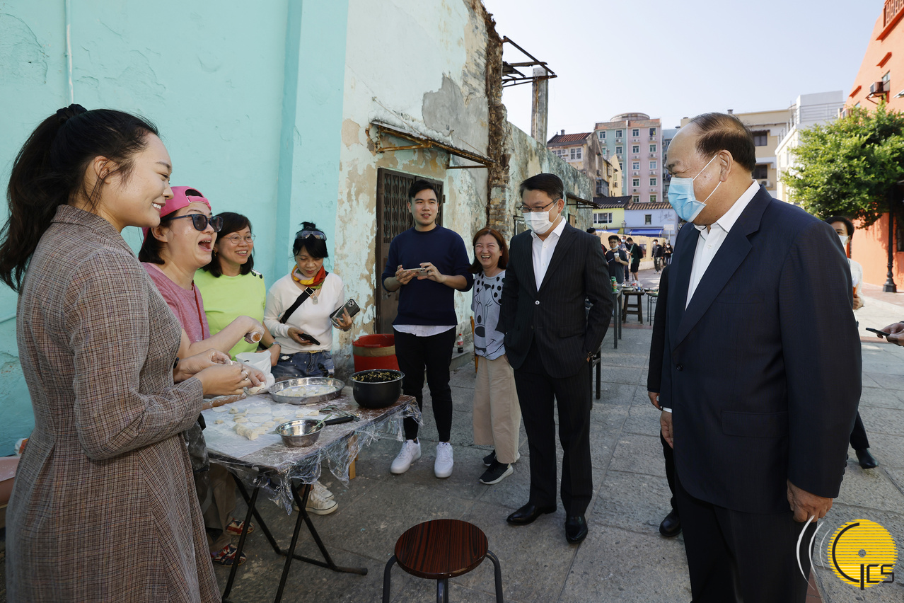 行政长官贺一诚走访离岛及澳门旧城区,瞭解商号的营商情况及关注居民就业环境,受到商号热烈欢迎。
