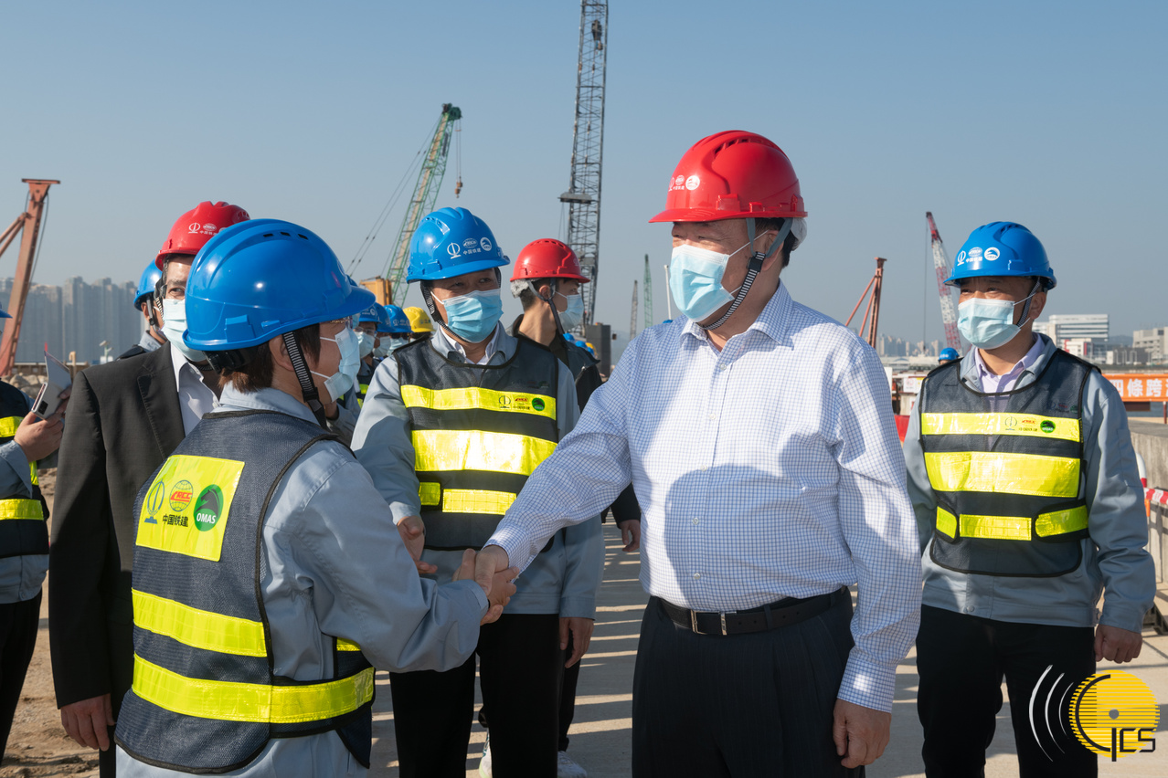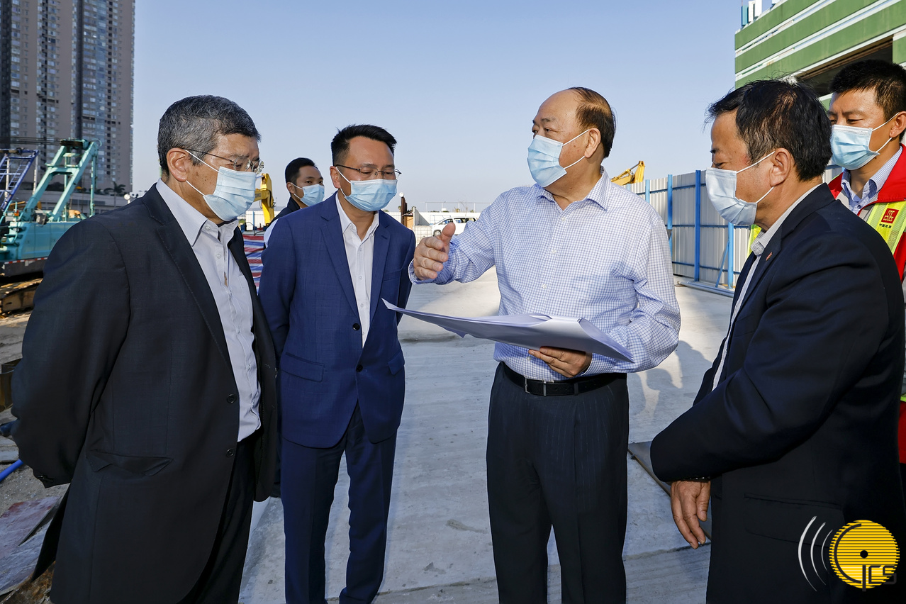 行政长官贺一诚巡视工地现场各项工作进展,听取介绍澳氹第四条跨海大桥进展情况。