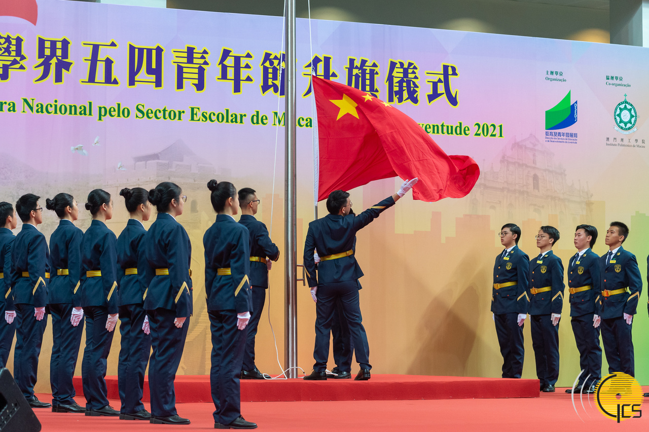教育及青年发展局早上于澳门理工学院体育馆举行了“澳门学界五四青年节升旗仪式”。多家学校的老师和同学,及青年社团代表们参与。