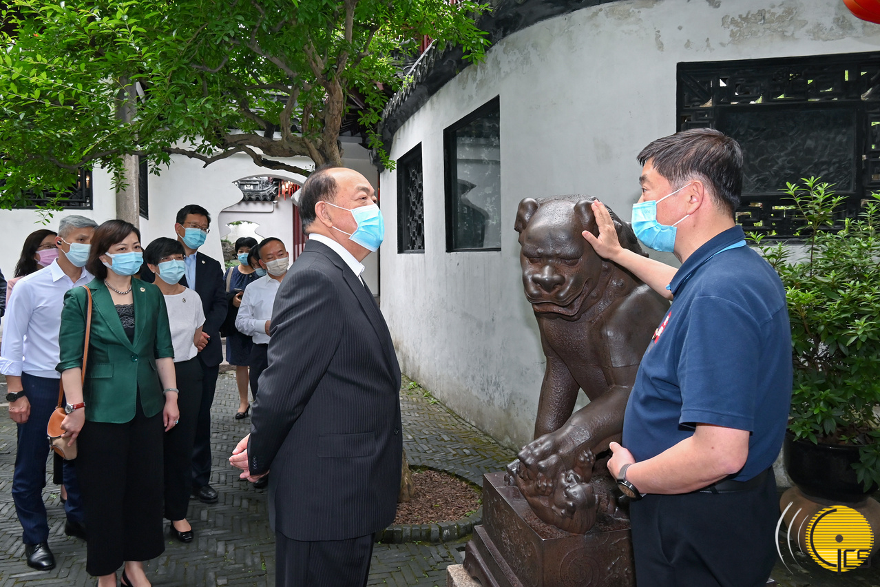 行政长官贺一诚考察上海的文化产业项目,了解当地文化产业的发展情况。