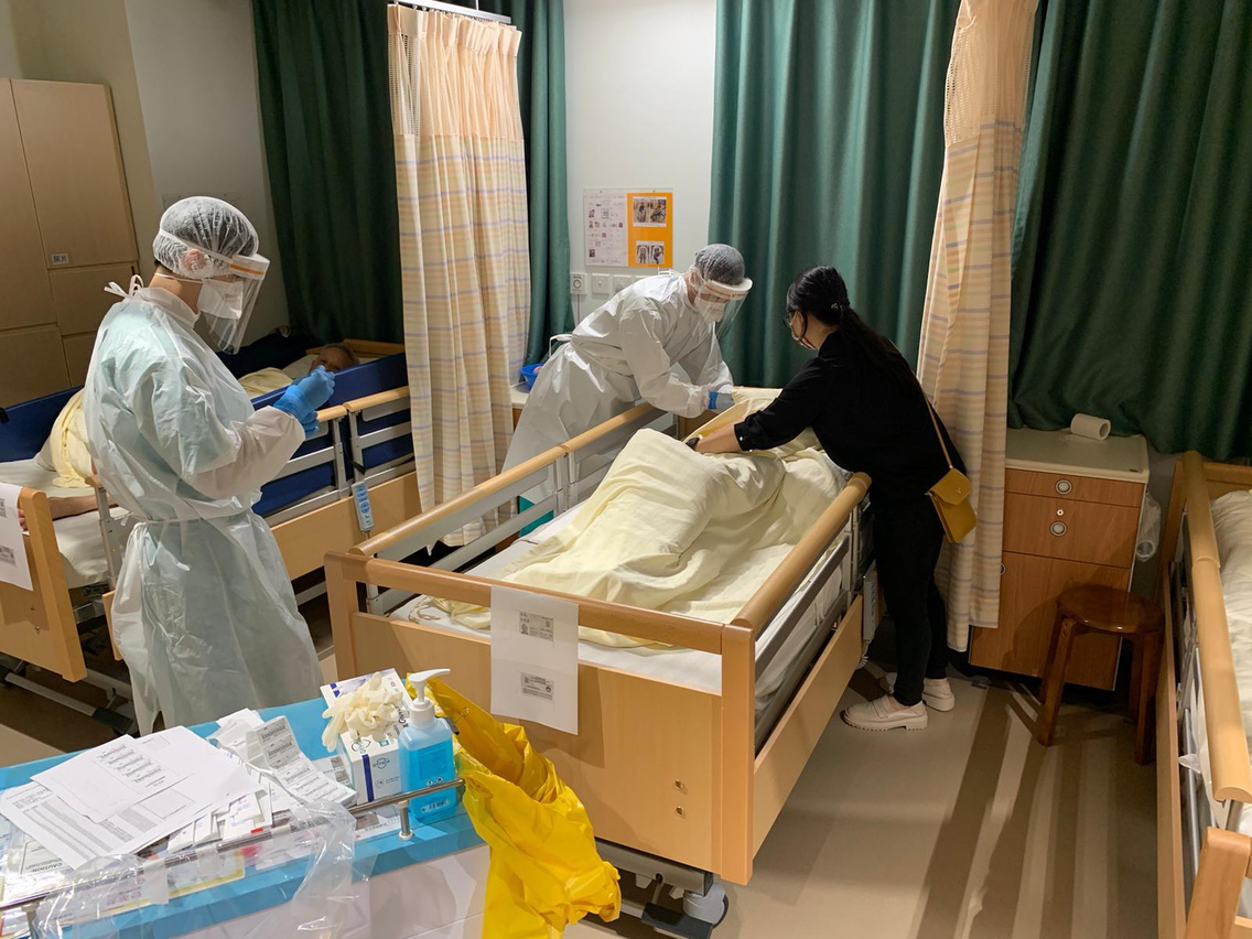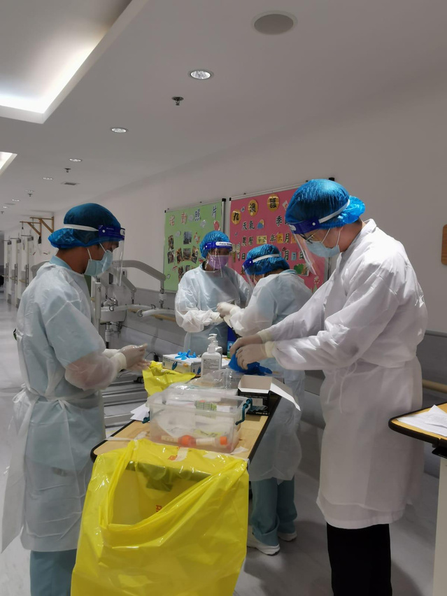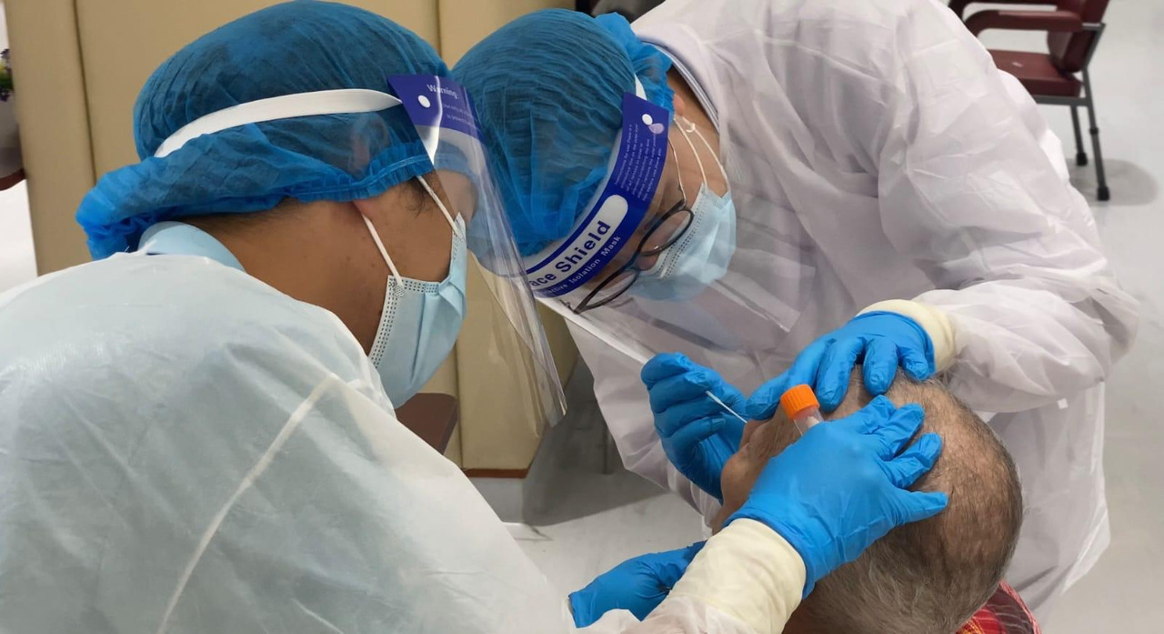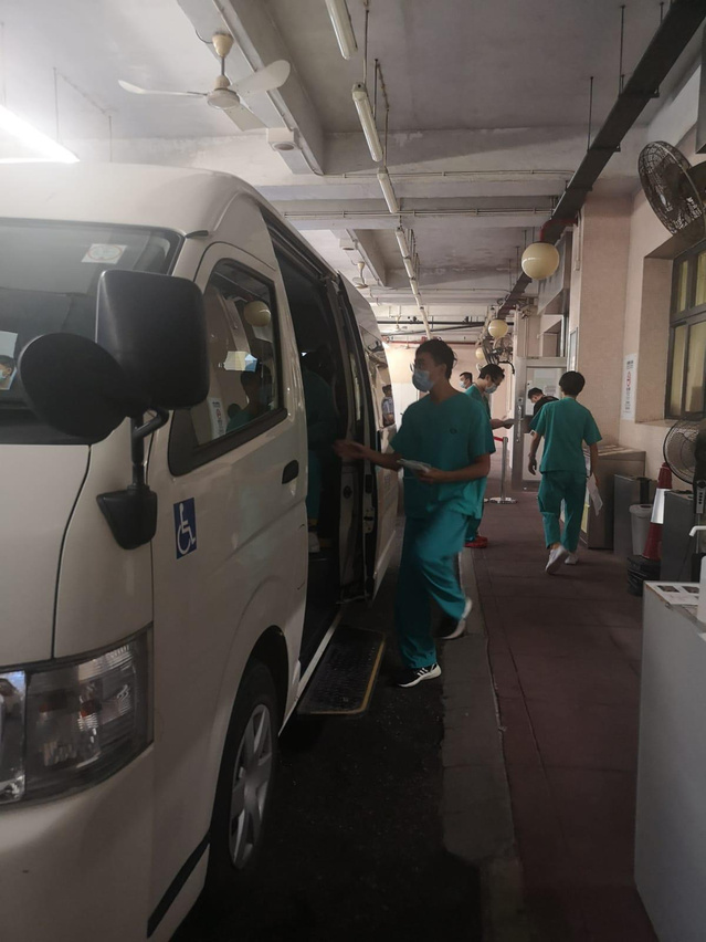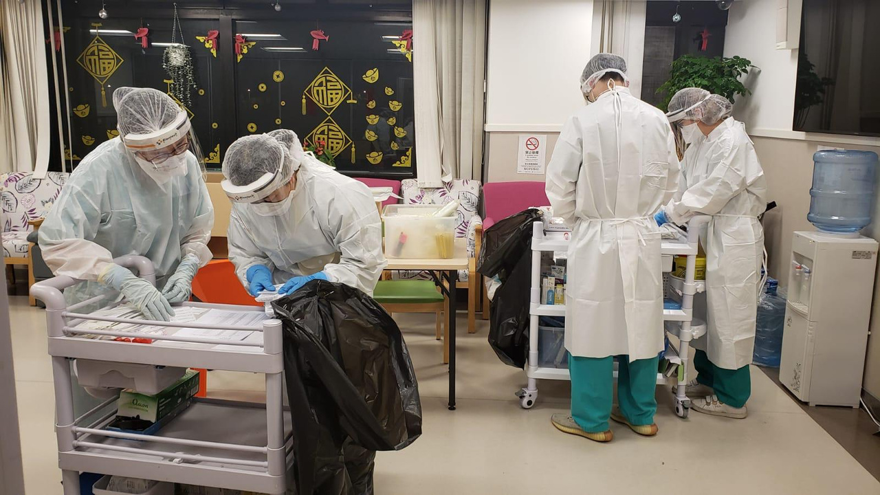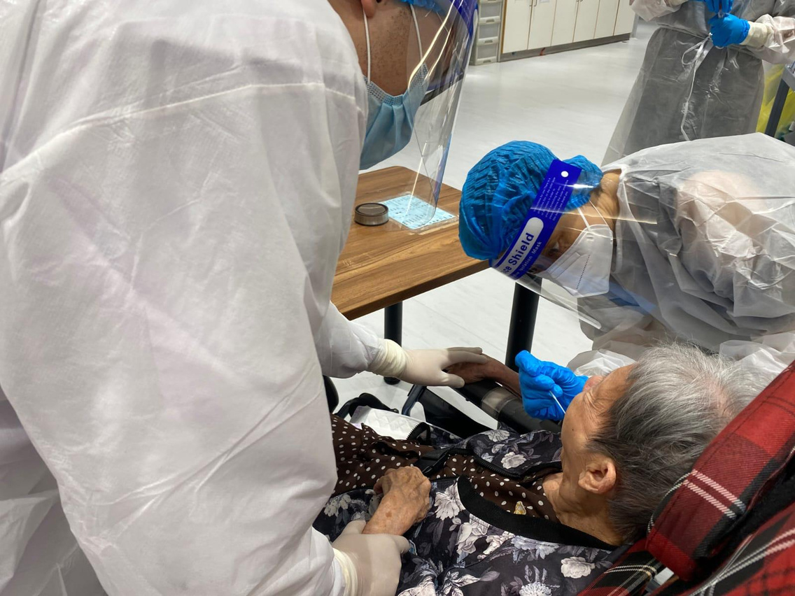 卫生局、社工局和工联总会协调组成了合共14队核酸检测外展队,在院舍及社区中上门为行动不便人士进行核酸检测。