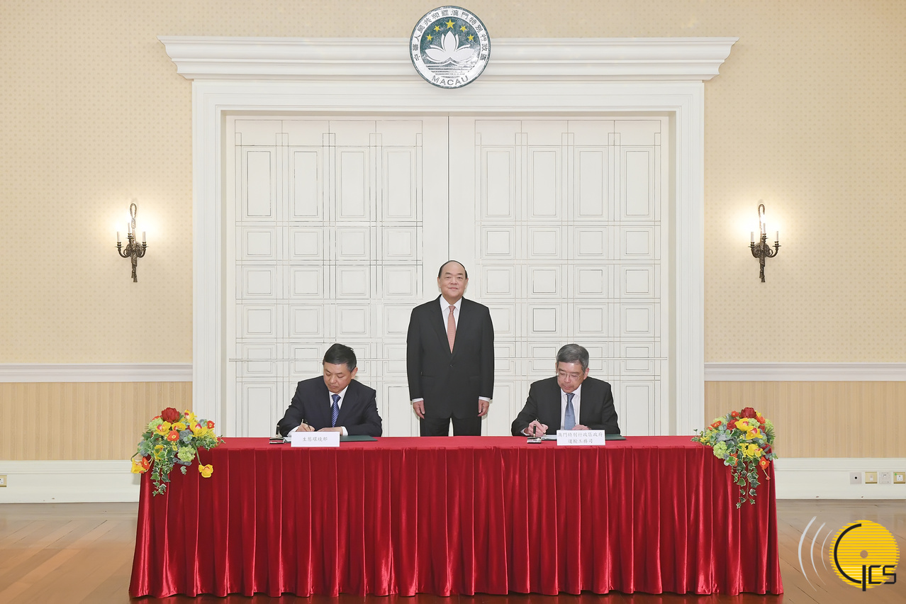 在行政长官贺一诚见证下,国家生态环境部部长黄润秋及澳门特区政府运输工务司司长罗立文代表双方签署《内地与澳门特别行政区环境保护合作安排》。