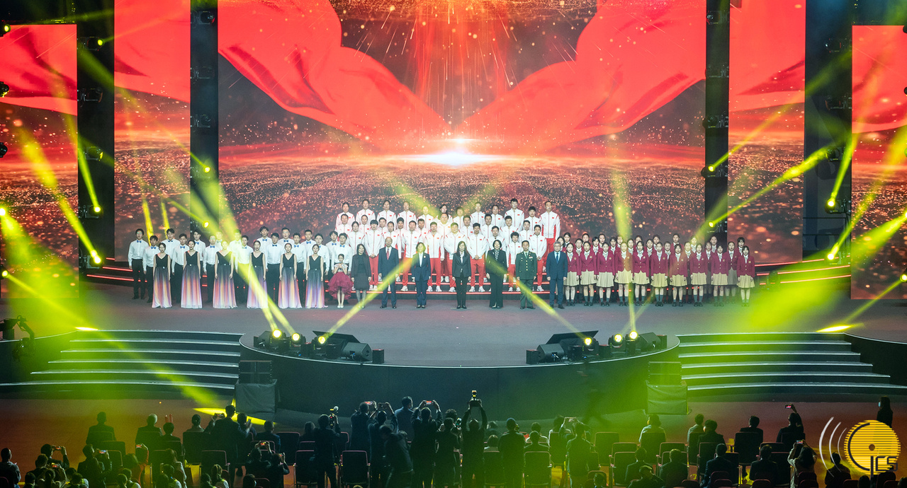 联欢会接近尾声,社会文化司司欧阳瑜等主礼嘉宾及全体国家奥运精英运动员上台谢幕及大合影。