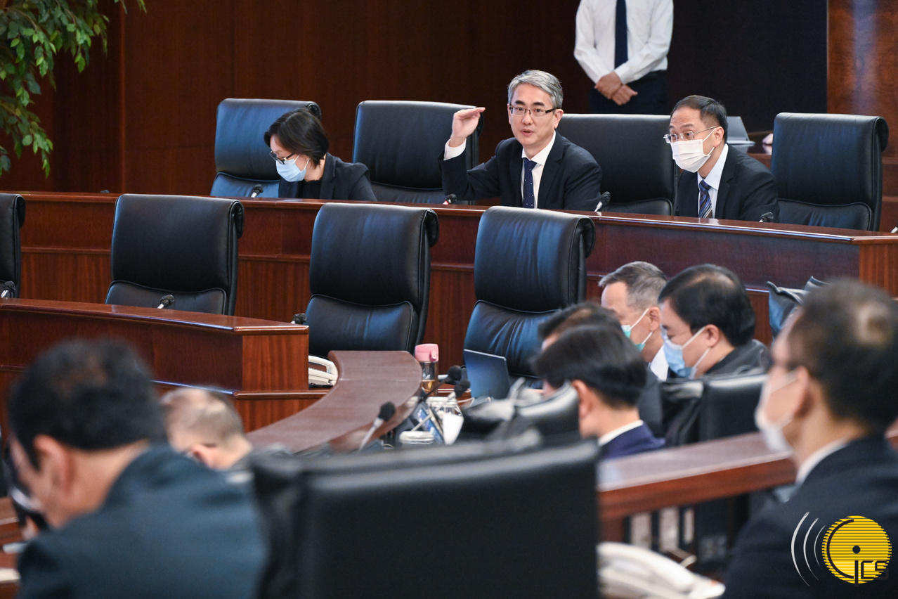 行政法务司司长张永春列席立法会全体会议,回应议员提出的口头质询。