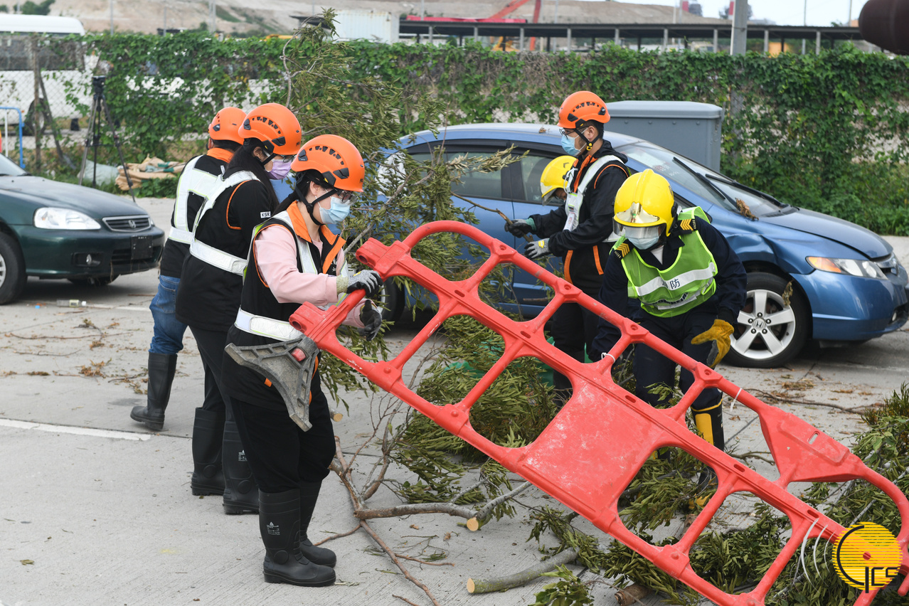 “水晶鱼2022”台风演习-民防志愿者参与道路清障工作。