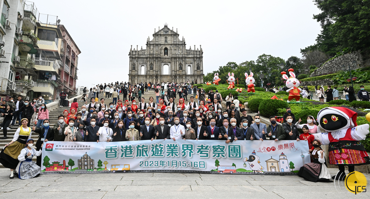 经济财政司司长李伟农与香港旅游业议会访澳代表团于大三巴牌坊前合照