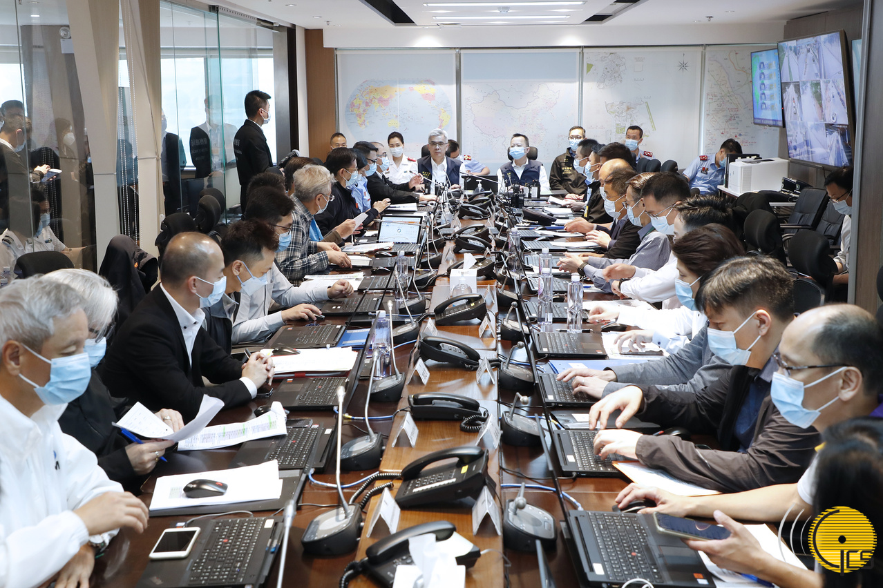 “水晶鱼2023”台风演习-演习开始,民防行动中心启动全面运作模式,就应对台风进行工作部署。