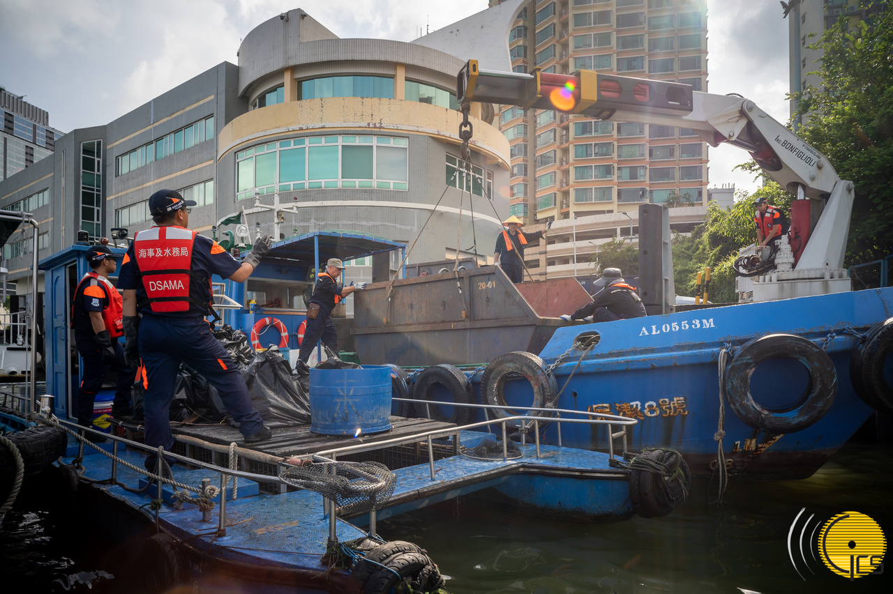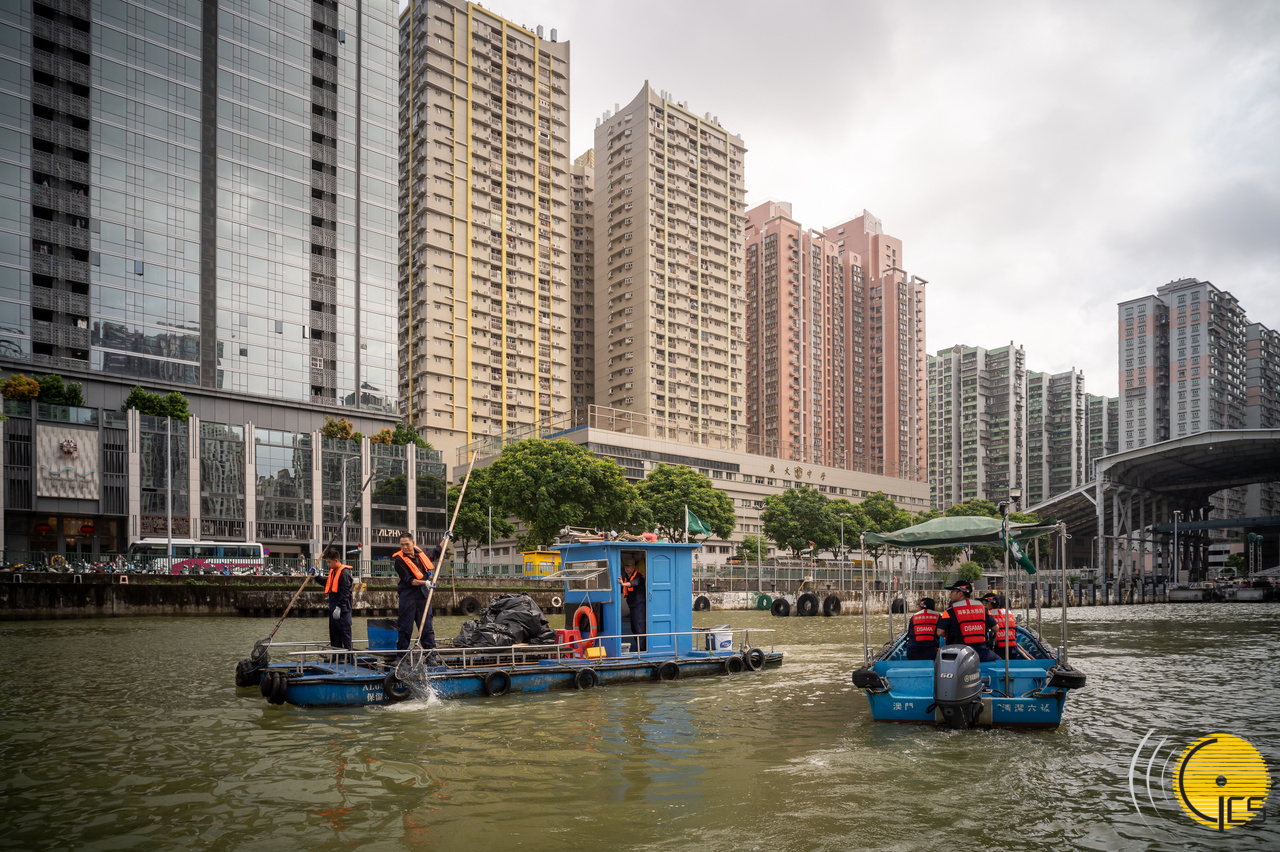 海事人员执行海上清洁任务,当发现垃圾积聚时便会即时处理。降雨、台风、风向和潮汐变化都会影响垃圾位置和堆积量。