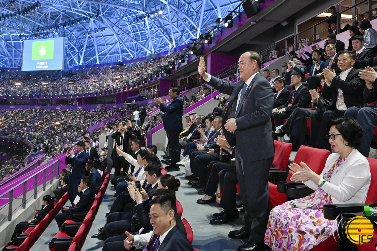 “第十九届亚洲运动会”开幕式晚上8时在杭州奥体中心隆重举行,由国家主席习近平宣布开幕。行政长官贺一诚应邀出席开幕式,见证杭州亚运这项体育盛事拉开序幕,以及中国体育代表团和中国澳门体育代表团进场的喜悦时刻。
