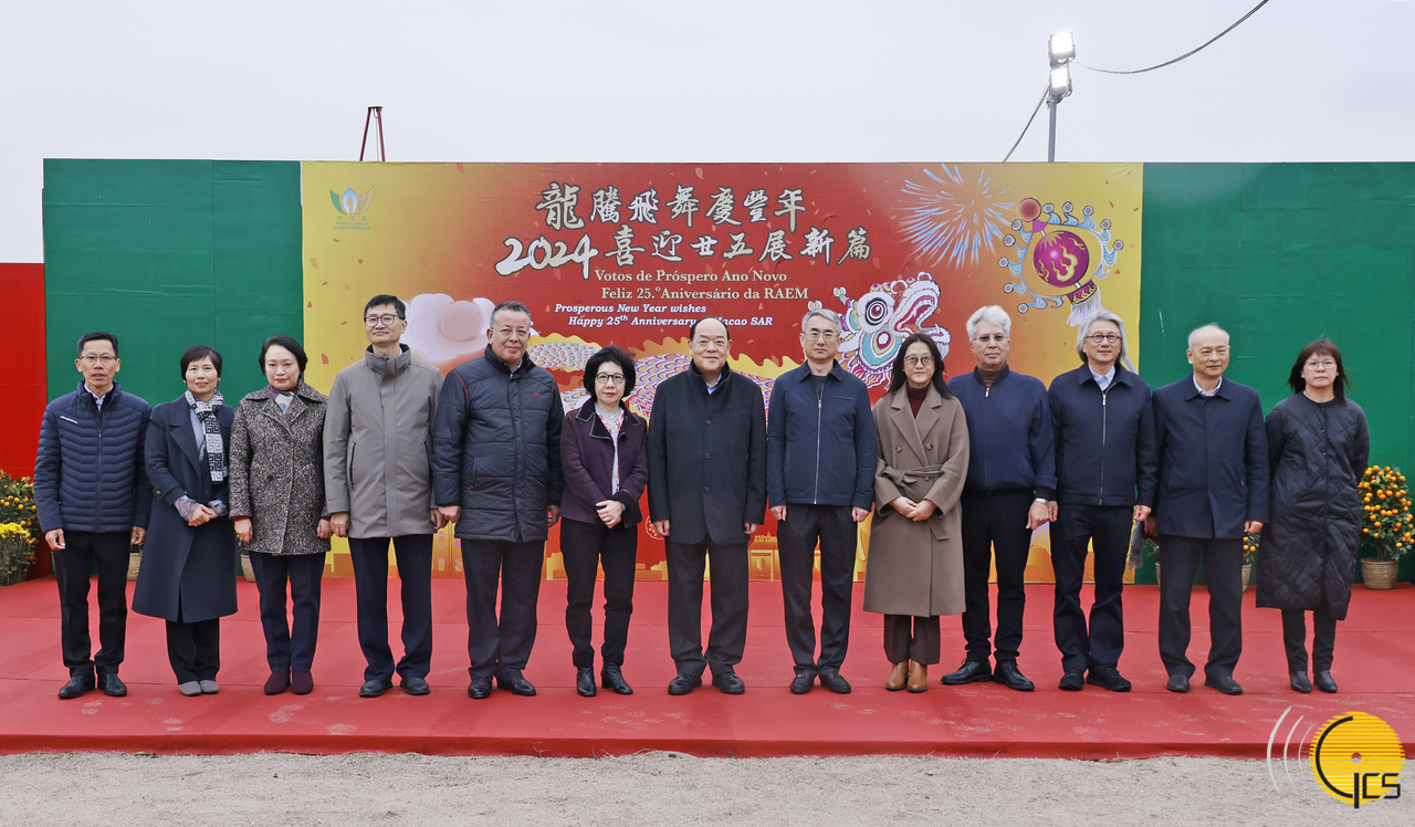 行政长官贺一诚伉俪参观氹仔爆竹燃放区后,与行政法务司司长张永春、市政署管理委员会主席戴祖义等合影。
