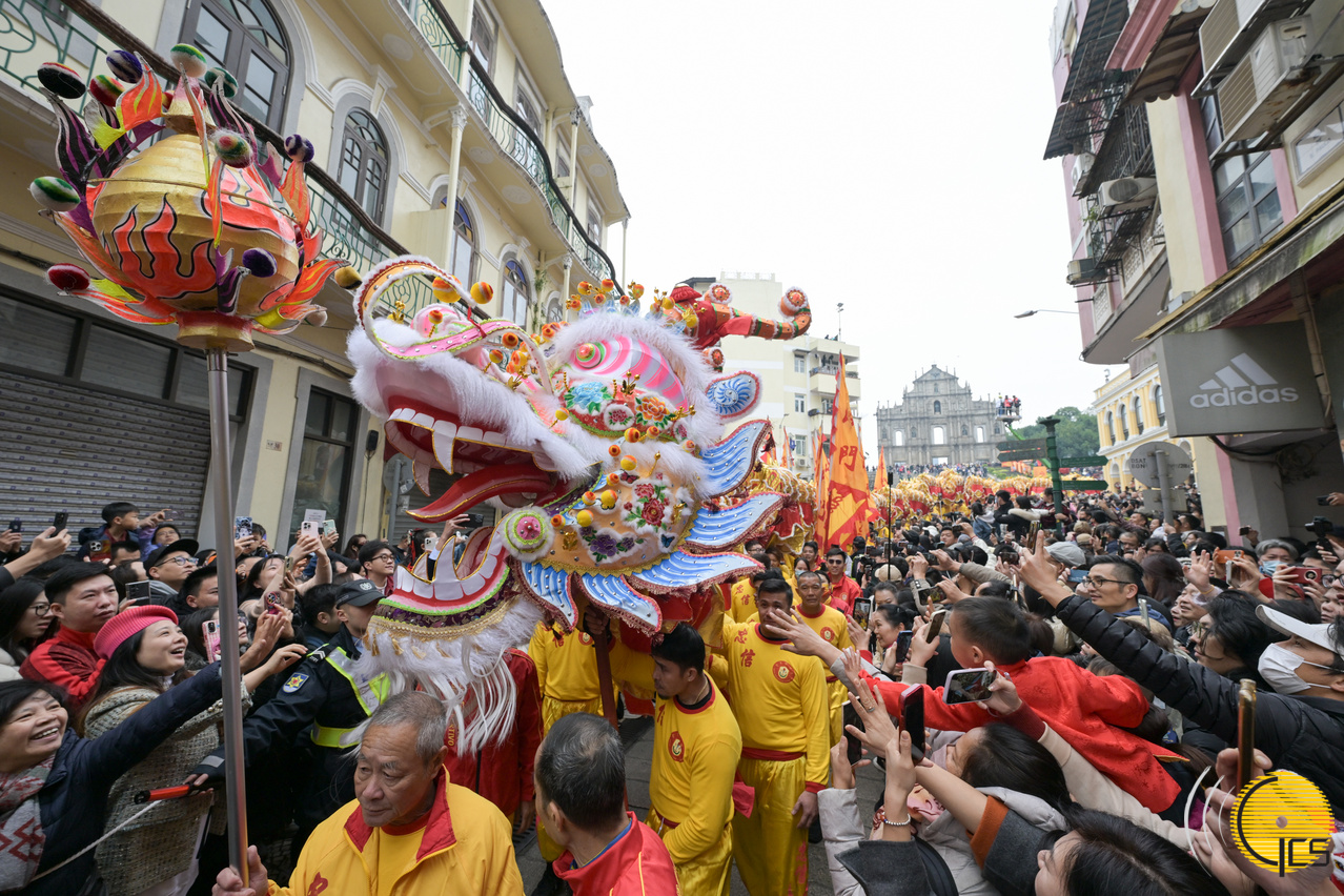 “欢乐春节 ─2024年龙腾舞跃贺新春社区巡演”在大三巴牌坊举行大金龙醒狮巡游起步仪式。