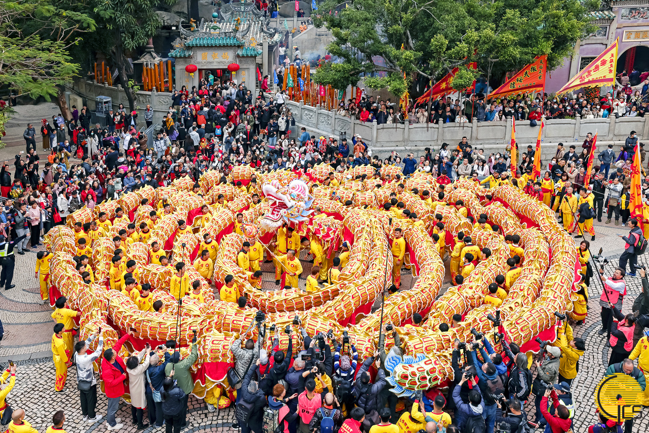 “欢乐春节 ─2024年龙腾舞跃贺新春社区巡演”— 大金龙由大三巴巡游至西湾湖广场,沿途向居民及旅客拜年。