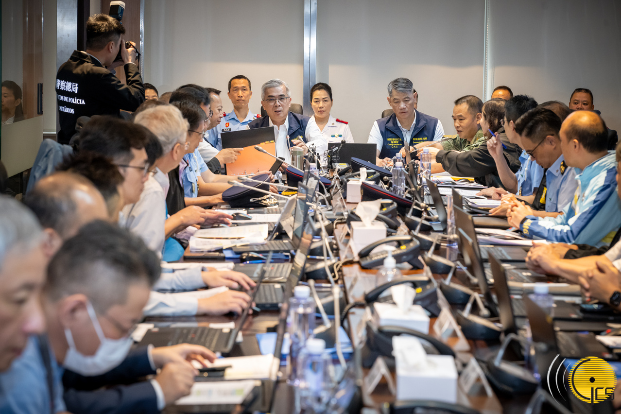 “水晶鱼2024”台风演习-保安司司长、联合行动指挥官黄少泽在民防行动中心主持民防架构代表会议。